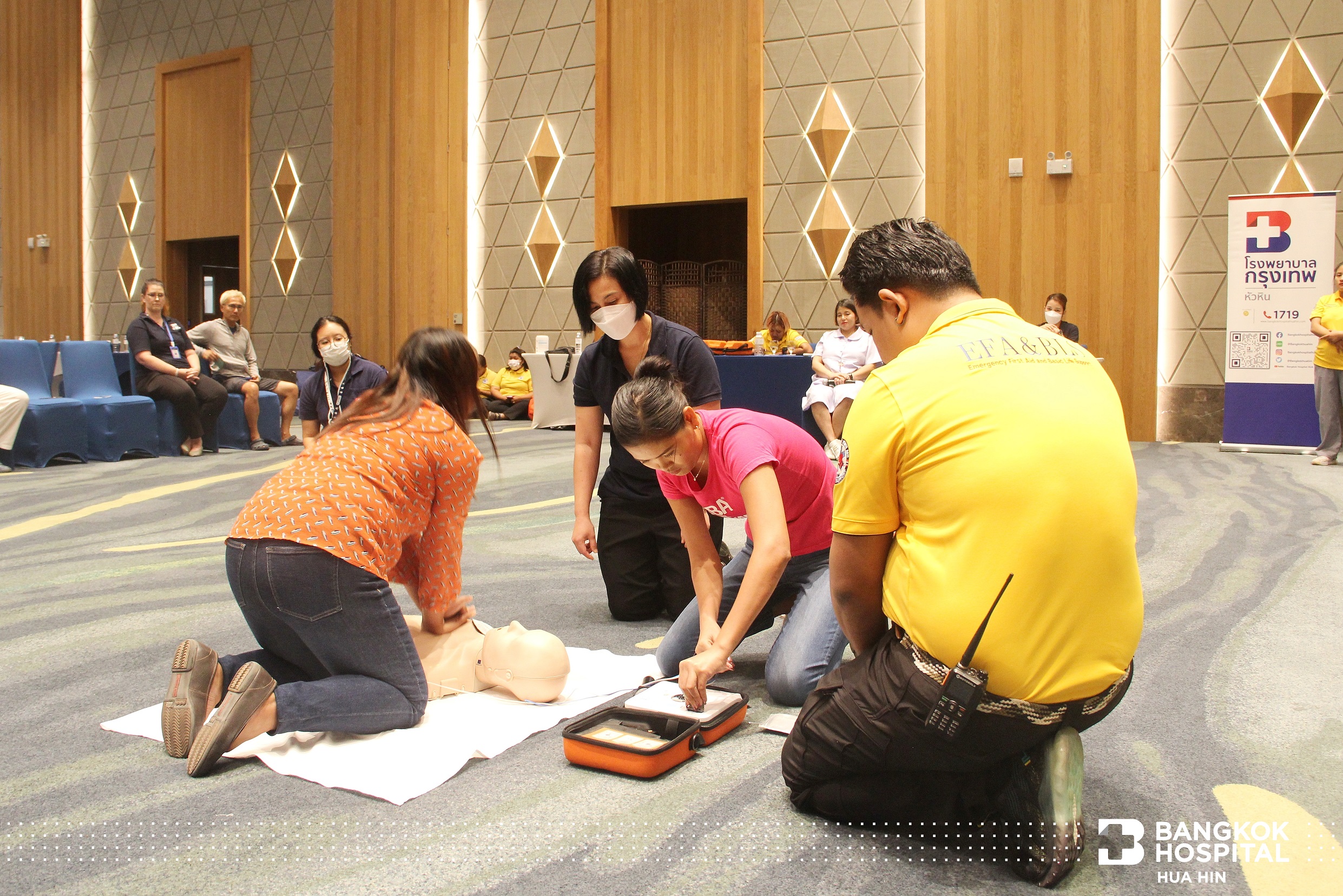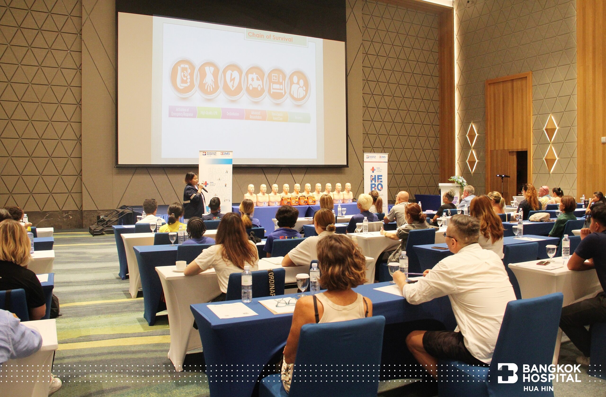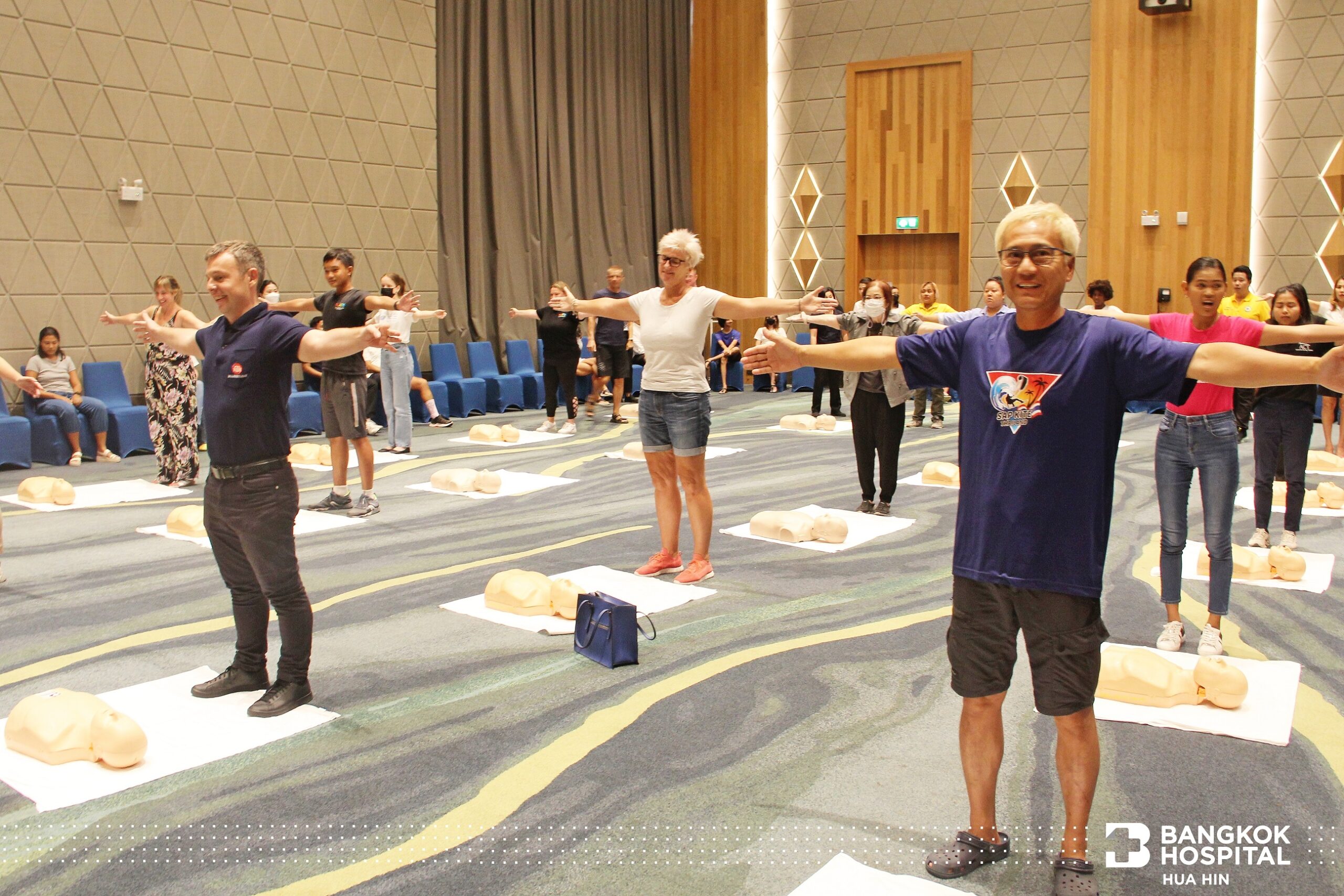 Das Krankenhaus hat dieses Projekt im Laufe des Jahres 2022 fortlaufend organisiert und zielt darauf ab, die Bewohner von Hua Hin und Umgebung, sowohl Thailänder als auch Ausländer, zu schulen, um Grundkenntnisse über lebensrettende Fähigkeiten zu vermitteln und ihnen das Selbstvertrauen zu vermitteln, bei Patienten bereits im Vorfeld angemessene lebenserhaltende Maßnahmen im Notfall zu leisten, bevor medizinisches Personal eintrifft.