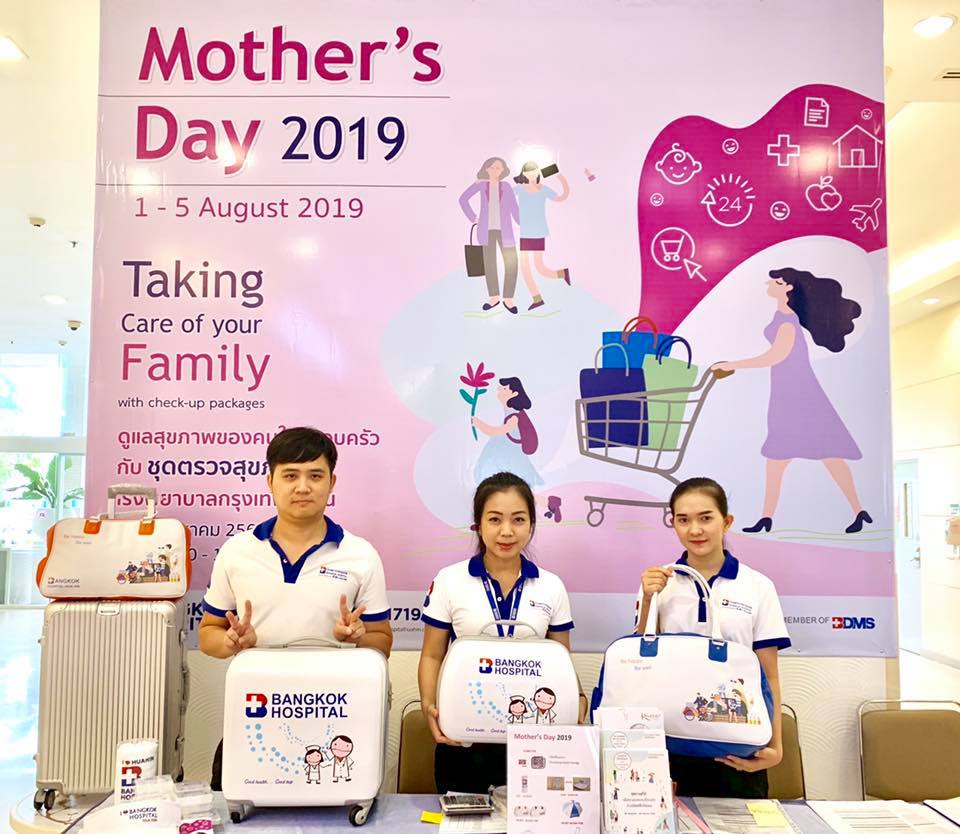 Muttertag 2019, Betreuung Ihrer Familie mit Sonderaktion für Gesundheitscheck-Pakete und Gesundheitsprodukte. 1. – 5. August 2019 im 1. Stock, Bangkok Hospital Hua Hin 8.00 –17.00 Uhr.