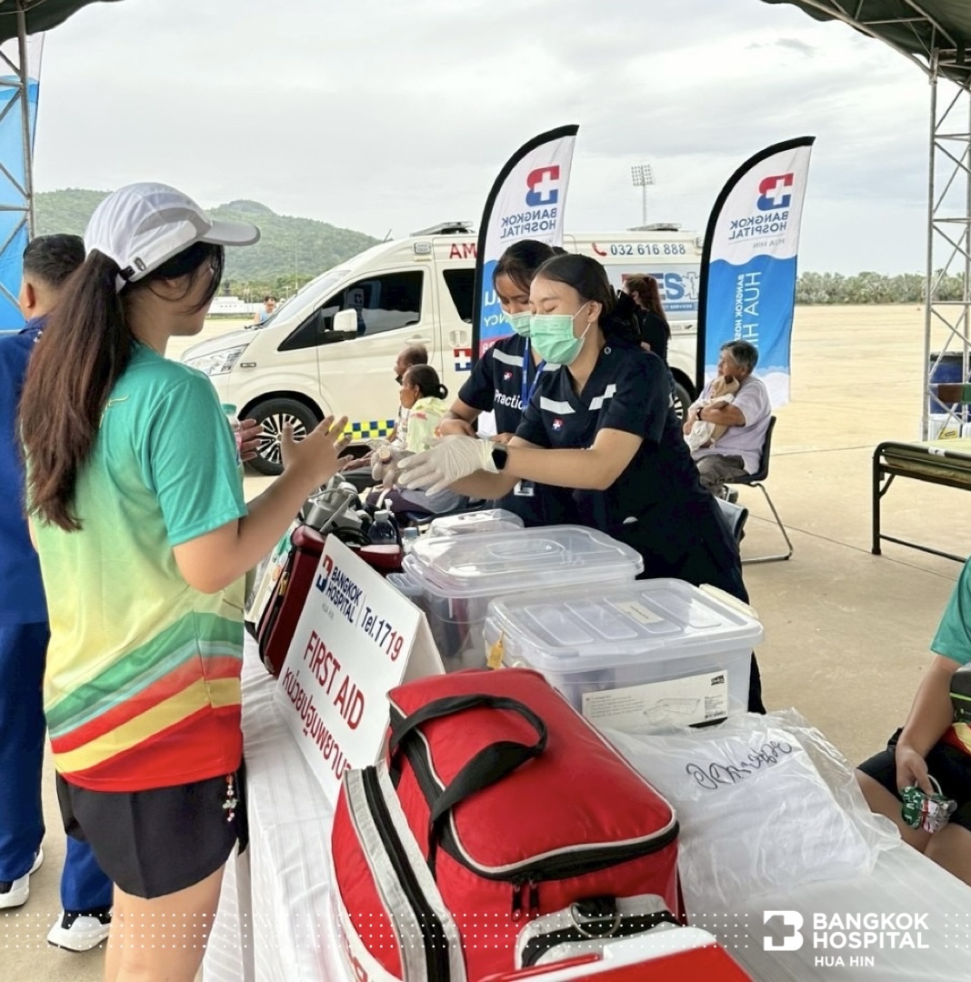 Am 12. July 2025 nahmen Ärzte, Krankenschwestern und Mitarbeiter des Bangkok Hospitals Hua Hin an der Veranstaltung des RUN FOR LOYALTY beim Rajabhakti Park, Hua Hin, Prachuap Khiri Khan teil und boten auch Erste-Hilfe-Dienste vor Ort und Bereitschaftsdienste für Krankenwagen an.