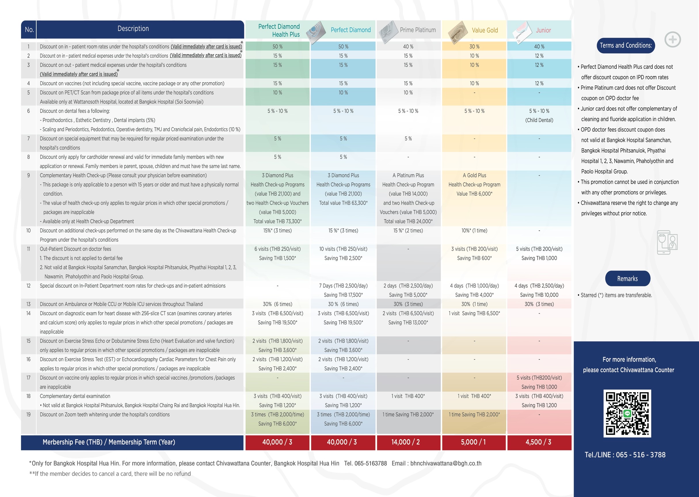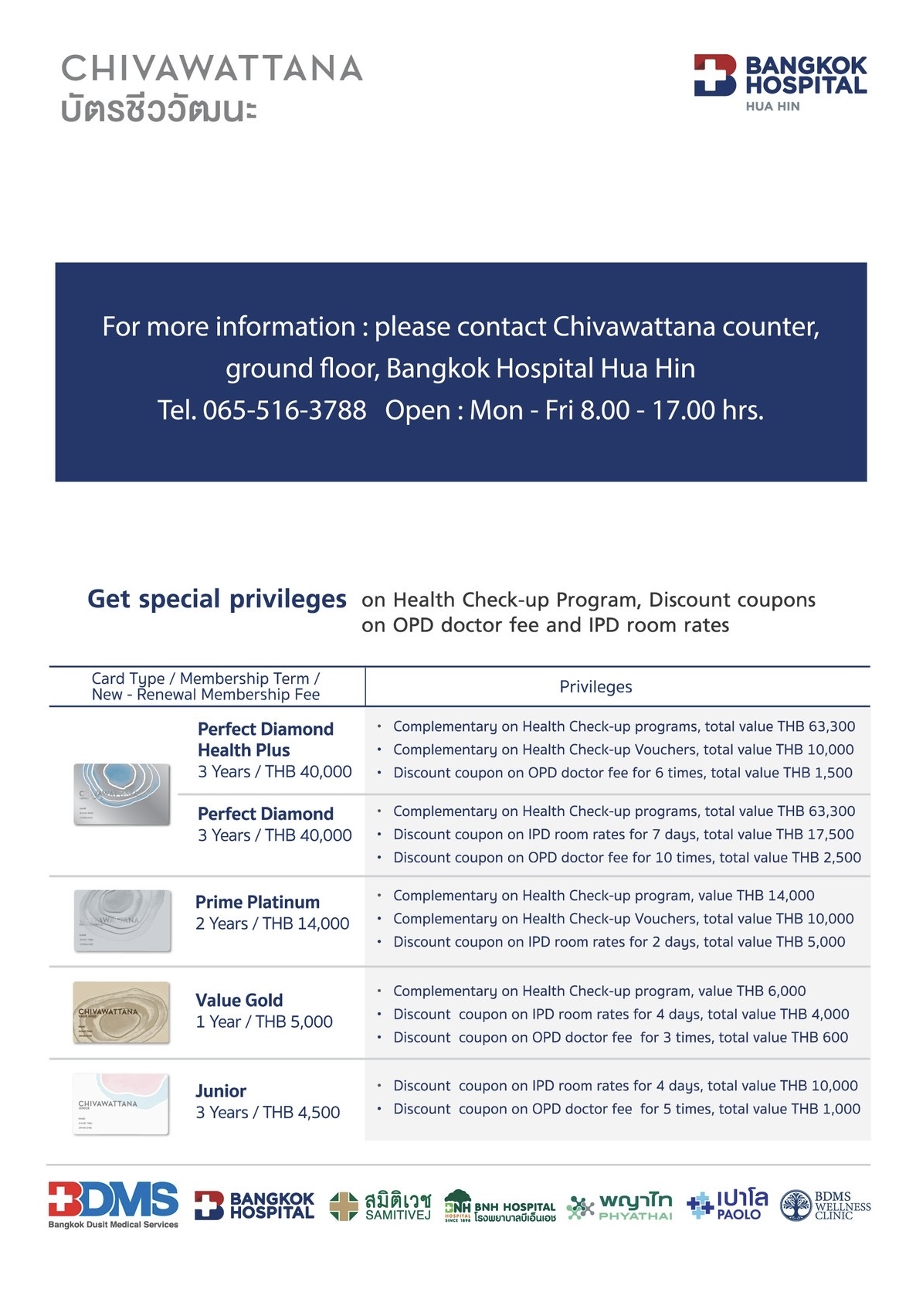 Sonder für neue / erneuerte Chivawattana-Mitgliedskarte und der Sonderrabatt gilt sofort nach Ausstellung der Karte!*,** (Nur für Bangkok Hospital Hua Hin)