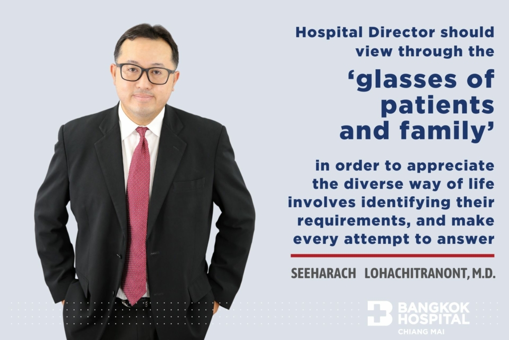 According to Dr. Beer, he has grown up in the marine atmosphere of Samut Songkhram in a family business, prior to completing medical studies at Khon Kaen University. After graduating, he served in the Ministry of Public Health and began working to administer 3 hospitals under the Office of the Permanent Secretary of the Ministry of Public Health. Before relocating to Chiang Mai, he was the director of Bangkok Pattaya Hospital, 12 years in total under the roof of Bangkok Dusit Medical Services (BDMS).
