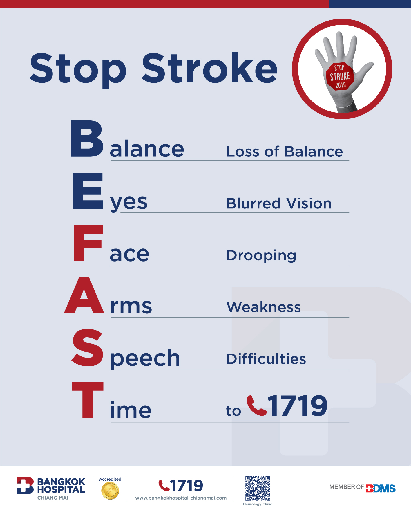 If you or relatives have these symptoms with suddenly occur, it is assumed symptoms of a stroke. Be-FAST includes inability to balance, a vision disorder like blurred vision or abnormal vision, weakness of limbs, weakness one or both sides of the face, slurred speech, inability to remember words, difficulty in communication, having a severe headache and dizziness. The mentioned symptoms result from the malfunction of the brain.