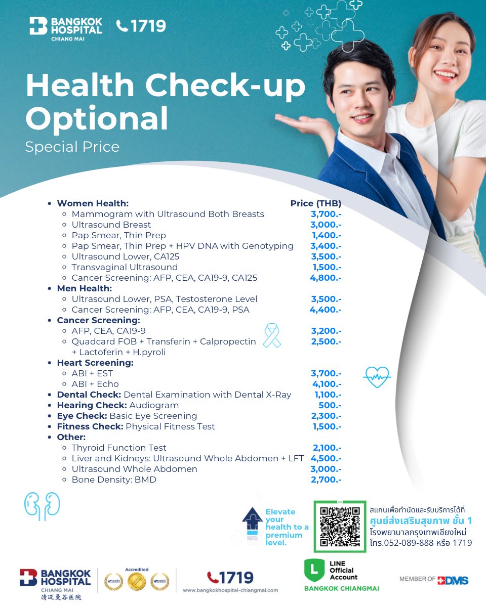 - Cancer Screening: AFP, CEA, CA19-9, CA125 : 4,800 THB
