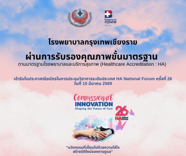 This achievement reflects the strong commitment of the Bangkok Hospital Chiang Rai team to continuously improve the quality of healthcare services and elevate patient care standards.