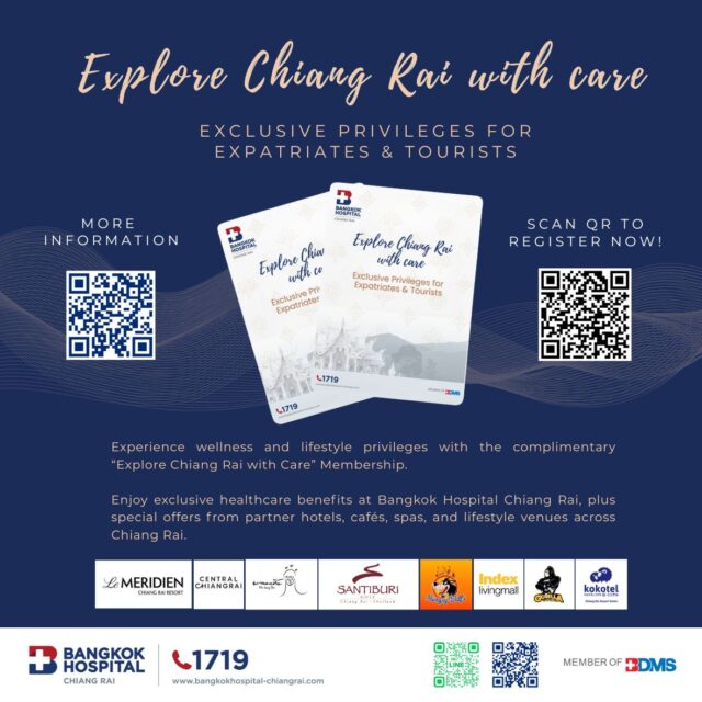 The Explore Chiang Rai with Care Card is more than just a privilege — it’s your complimentary gateway to a lifestyle of wellness, comfort, and cultural discovery in Northern Thailand. Thoughtfully designed for tourists and expatriates, this complimentary membership offers peace of mind through trusted healthcare access while unlocking exclusive lifestyle privileges across Chiang Rai.