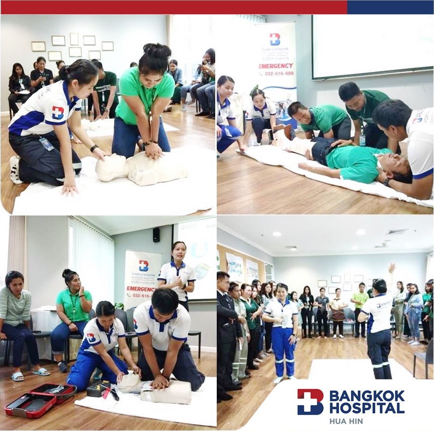 Bangkok Hospital Hua Hin provided basic life support & first aid training for staff at Hua Hin Market Village on 25th July 2019.