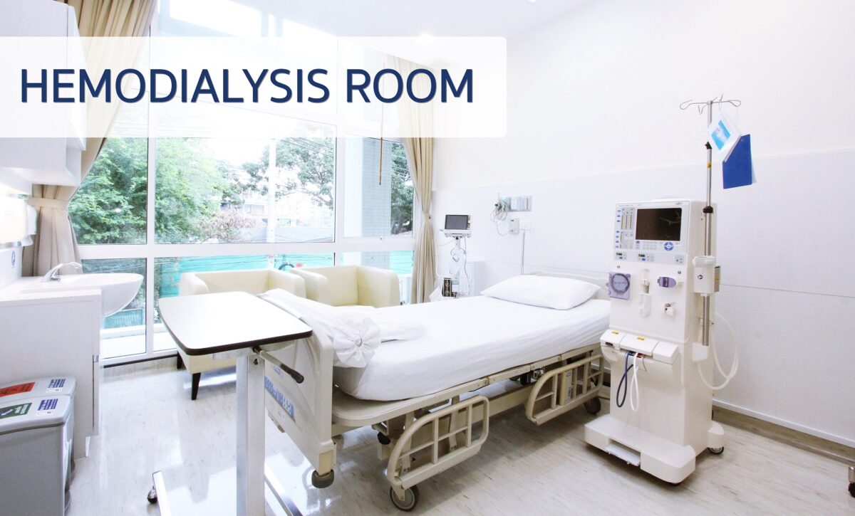 At Bangkok Hospital Hua Hin, we provide services of Kidney Replacement Therapy with Hemodialysis. In hemodialysis, a dialysis machine and a special filter called an artificial kidney are used to clean the blood which is carried out under close supervision of a team of specialists at hemodialysis unit. The hemodialysis machine imitates the functions of the regular kidneys to balance the electrolyte and fluid, also eliminates wastes in the blood. At the end of the process of hemodialysis, the good blood is restored back to patient’s body without contamination. Normally, the hemodialysis process takes 4 – 5 hours and 2 – 3 times per week, depending on the patient’s conditions and levels of waste in blood