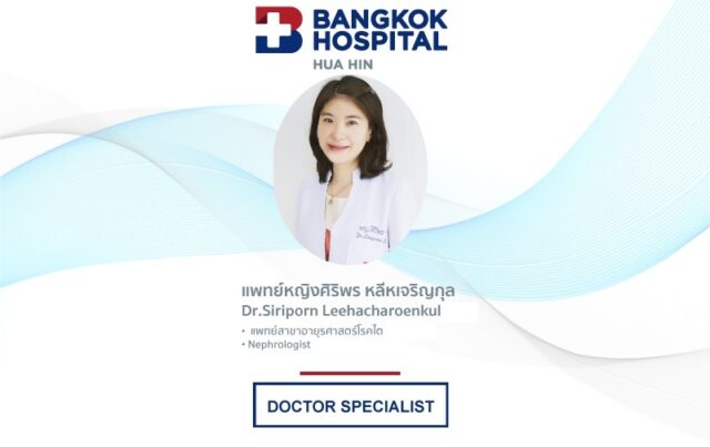 Dr.Siriporn Leehacharoenkul, our nephrologist at Bangkok Hospital Hua Hin shares that kidney diseases are ones of the major medical problems and sometimes considered a silent threat that can occur to anyone of any age. In normal conditions, organs will deteriorate with increased age which is unavoidable. The reduced kidney function usually occurs after the age of 30 years at an average rate of 1 percent per year.