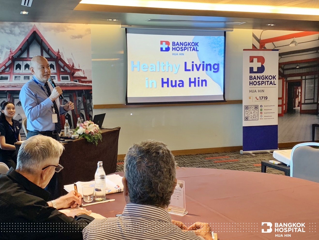 Bangkok Hospital Hua Hin organized a Health Talk seminar event, with Dr. Pongsak Boonyaleephun, Assistant Hospital Director of Bangkok Hospital Hua Hin, discussing the topic “Healthy Living in Hua Hin” for foreigners. The event took place at Amari Hua Hin on August 24th, 2023.