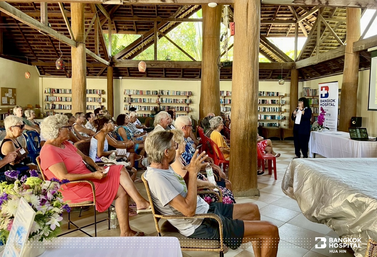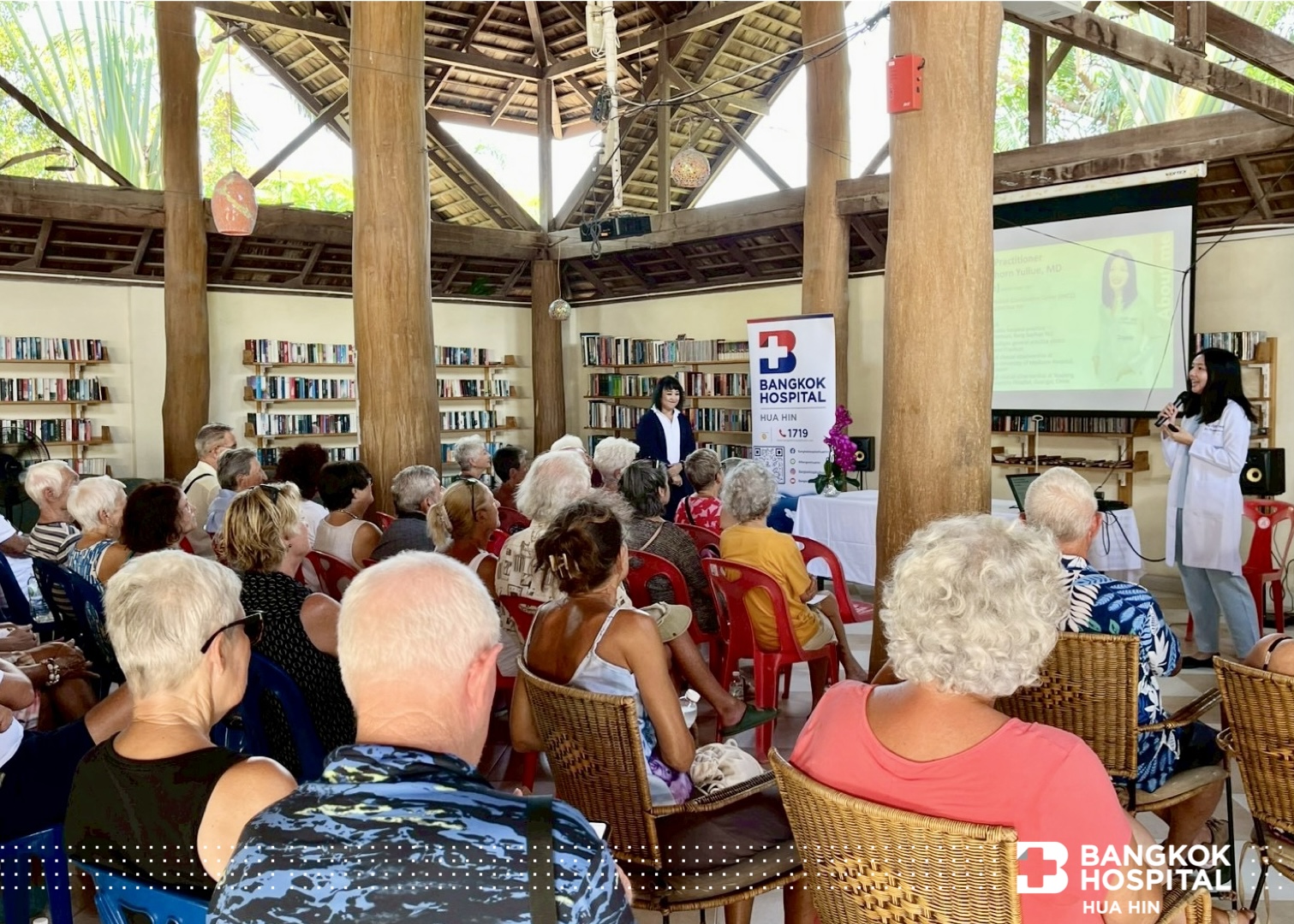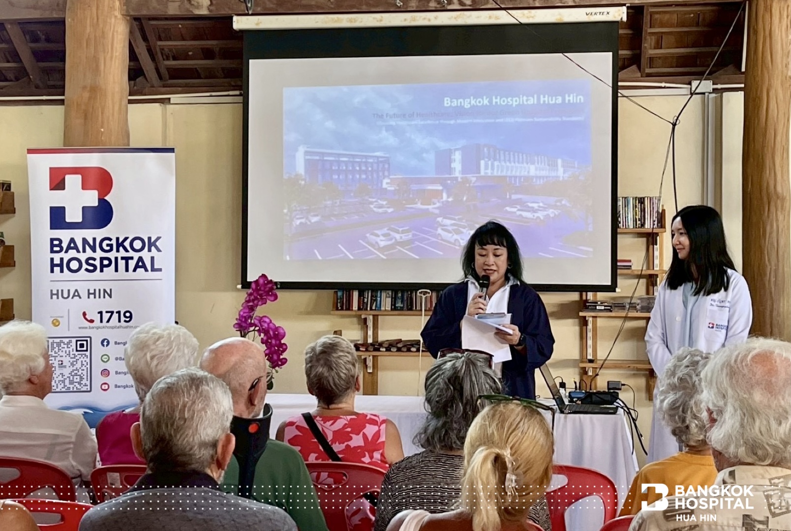 Khun Niranuch Banasanprasit, Director of International Patient Experience at Bangkok Hospital Hua Hin, and Dr Thanyaphorn Yuilue (Medical Licence No. 74127), our General Practitioner, International Medical Coordinator Centre (IMCC), delivered a talk on “Healthy Aging in Hua Hin: Common Challenges We Often Overlook” to residents of Lotuswell Resort, Hua Hin, on 31 March 2026.