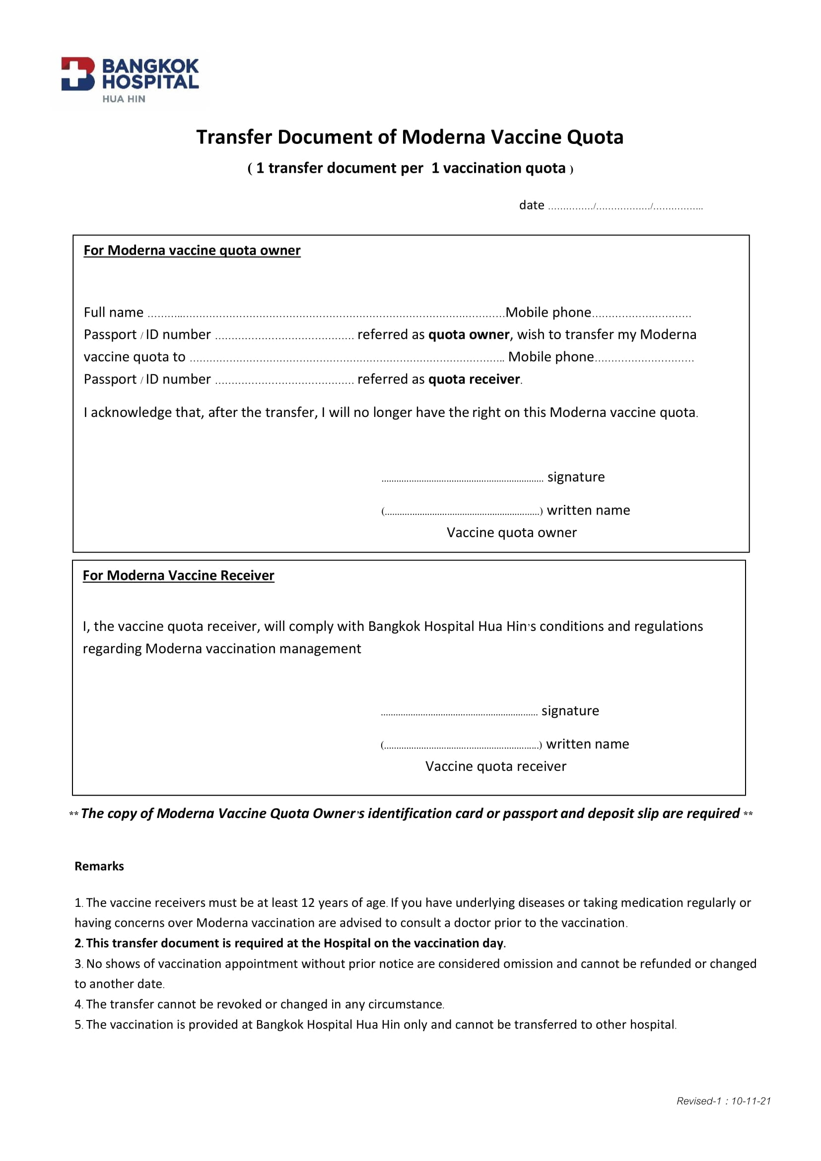 Download: click >> Transfer Document for Moderna Vaccine-Bangkok Hospital Hua Hin