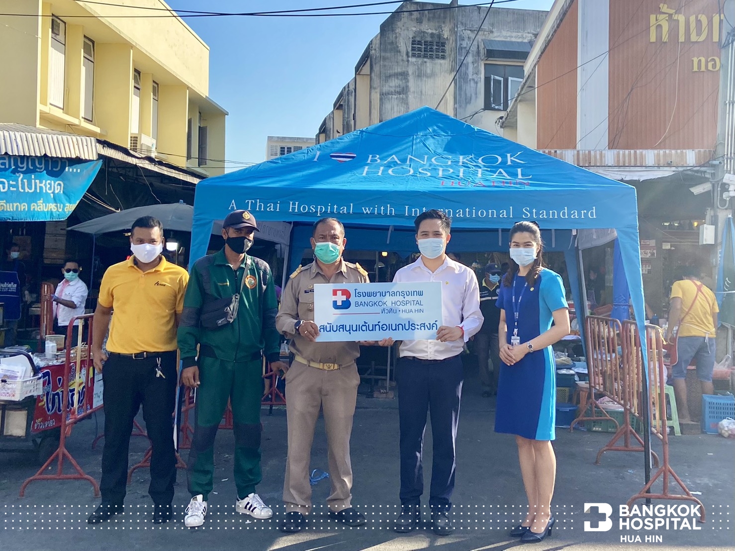 Bangkok Hospital Hua Hin supported the Hua Hin Municipality by sponsoring a tent to be stationed for five screening points at Chatchai Market on 5th January 2021.