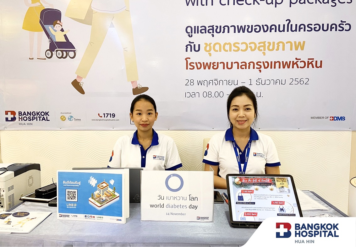 World Diabetes Day is held on 14 November each year to raise global awareness of diabetes mellitus. This year Bangkok Hospital Hua Hin encourages people to prevent this disease by taking care of yourself. Please visit our booth today (14 November 2019) at Bangkok Hospital Hua Hin, 1st floor, 9.00 – 17.00 hrs.