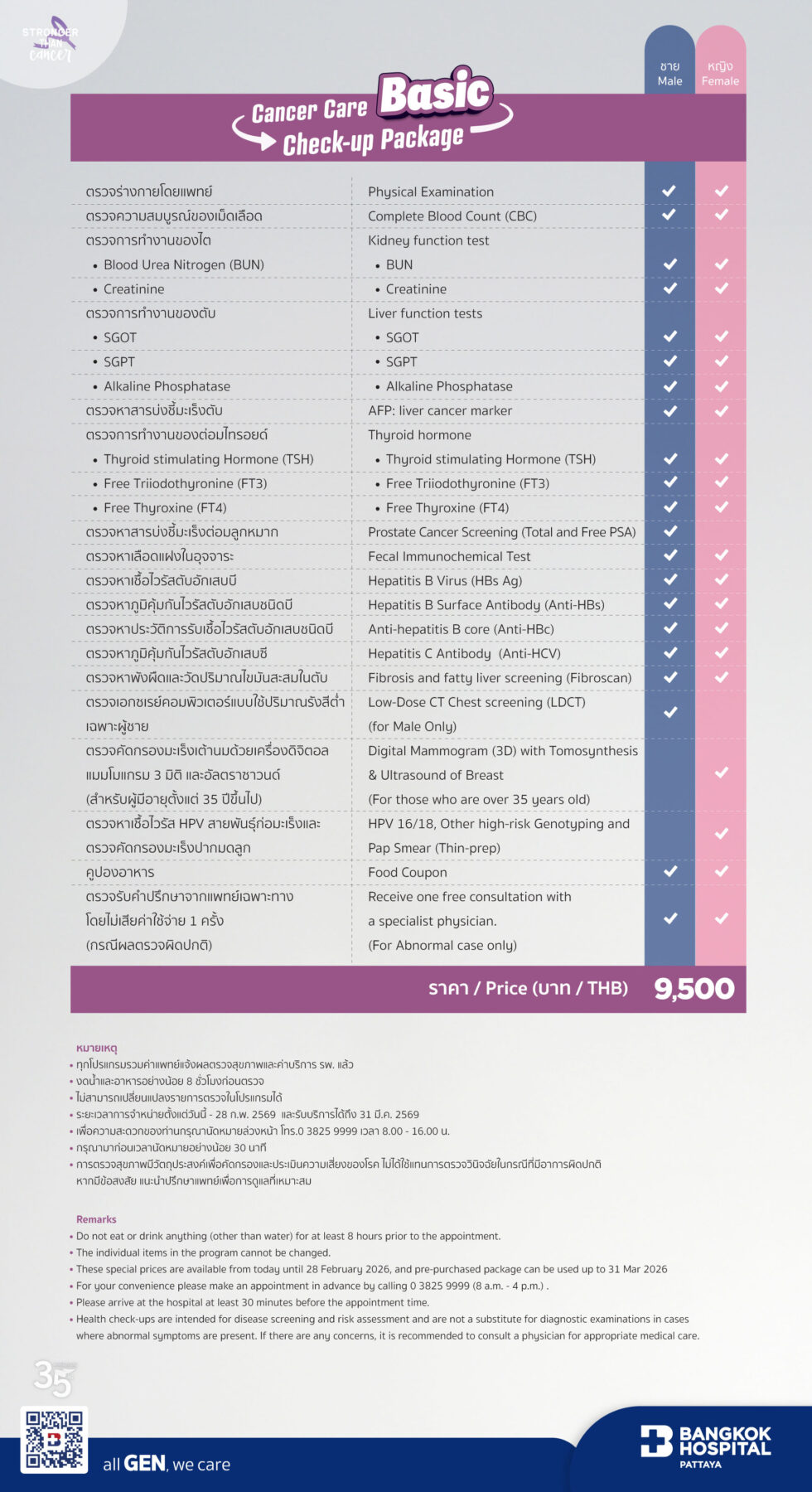 - These prices include doctor fee for informing results of tests and hospital service charge.