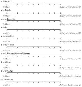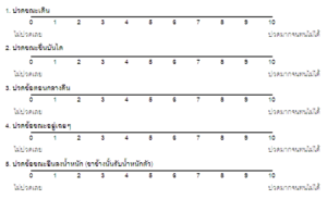 0 = No pain at all, 10 = Unbearable painระดับความปวด (0 – 10) โดย 0 ห
