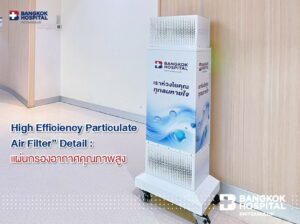 The hospital is now equipped with a high-efficiency air filtration system designed to maintain PM 2.5 levels within the safe limits defined by the National Environmental Board. This system operates throughout the hospital using High-Efficiency Particulate Air (HEPA) Filters, certified at H14 class, which can effectively filter out 99.99% of airborne particles, including dust and pathogens, as small as 0.1 to 0.2 microns.