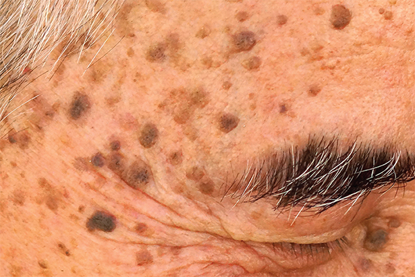 Age spot, or sun spot, and seborrheic keratosis
