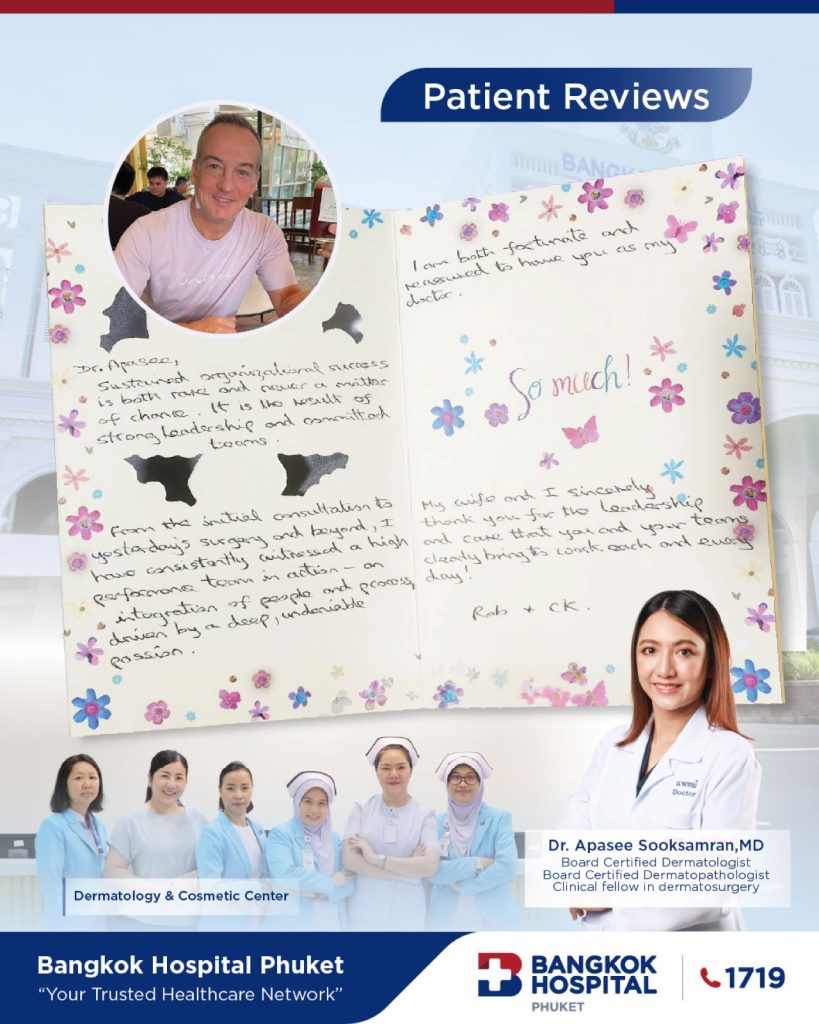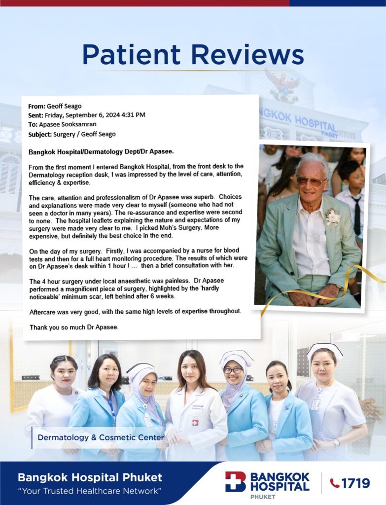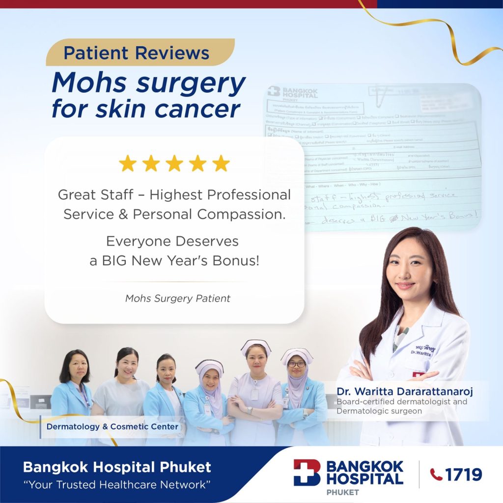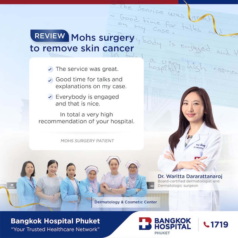 If you have been diagnosed with skin cancer or have a suspicious lesion, contact Bangkok Hospital Phuket to learn if Mohs surgery is right for you. We are here to guide you every step of the way—with compassion, precision, and expertise.