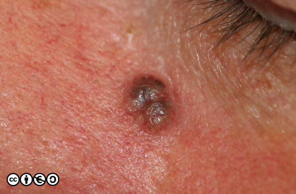 In darker skin, BCC may appear brown, black, or darker than surrounding skin.