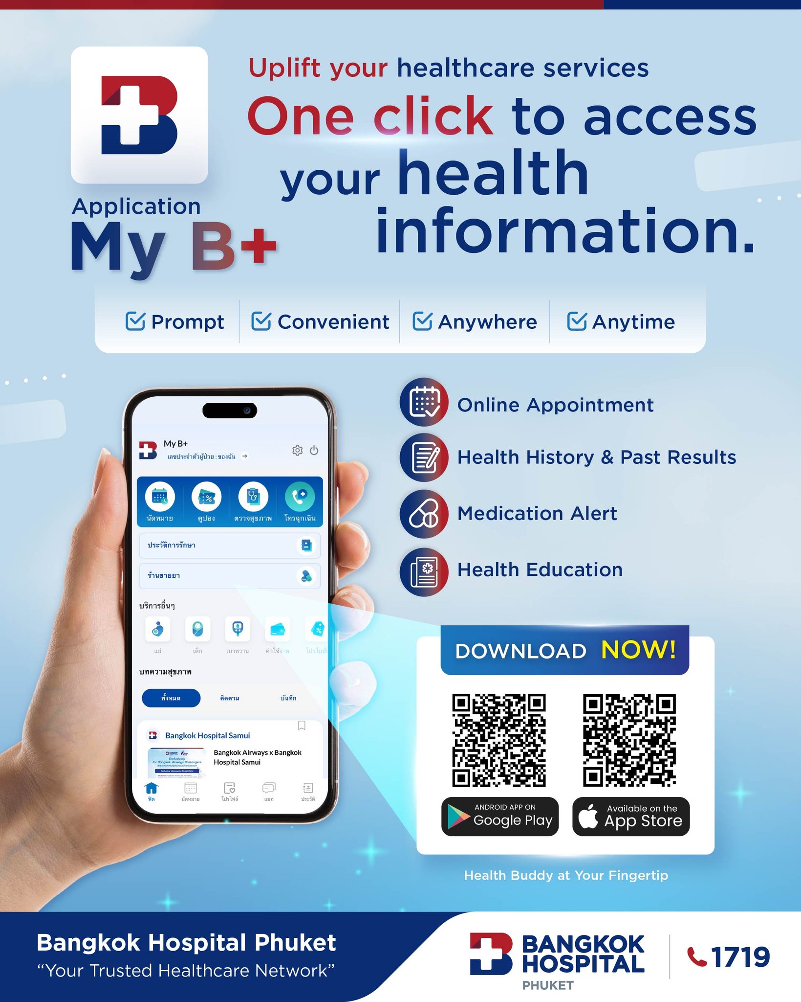 My B+ Application is a mobile app that gives you access to your health records anytime and anywhere with just one click. You can choose to get the health service that you need faster through the following features: