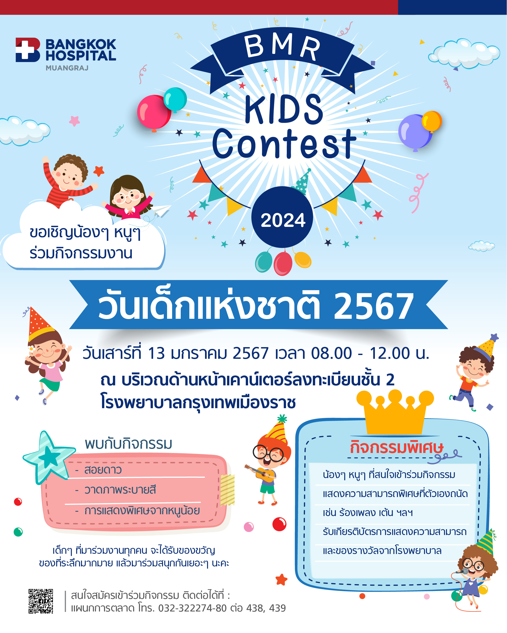 BMR KID Contest< 1 minute(s) readInformation byBangkok Hospital MuangrajUpdated on: 25 Jul 2025Recommended PackagesHealthy Family Expo 2025Influenza vaccine for adults aged 15-49 years (nasal spray)Influenza vaccine for children aged 2-14 years (nasal spray)Bangkok Hospital MuangrajUpdated on: 25 Jul 2025Packages & PromotionsHealthy Family Expo 20252,900 - 12,900 BahtDetailInfluenza vaccine for adults aged 15-49 years (nasal spray)1,600 BahtDetailInfluenza vaccine for children aged 2-14 years (nasal spray)1,600 BahtDetailMore packagesNews & EventsSee AllNews & Eventsโครงการ มูลนิธิเวชดุสิตฯ "ปลูกต้นกล้า สร้างพยาบาล"โรงพยาบาลกรุงเทพเมืองราช ได้รับรางวัล “Bronze Award ด้านการดูแลใส่ใจอย่างเป็นเลิศ”กิจกรรมบริจาคโลหิตSee All