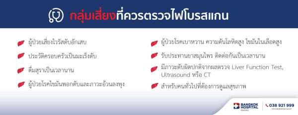FibroScan To examine the condition of fibrosis in the liver, fatty liver if found that the level of fibrosis in the liver is higher than normal May be at risk of cirrhosis which is one of the causes of liver cancer The FibroScan is a basic liver health check if you want to screen for the risk of liver cancer. It is recommended to examine with ultrasound of the upper abdomen. Blood test for hepatocellular carcinoma “alpha-fetoprotein (AFP)”