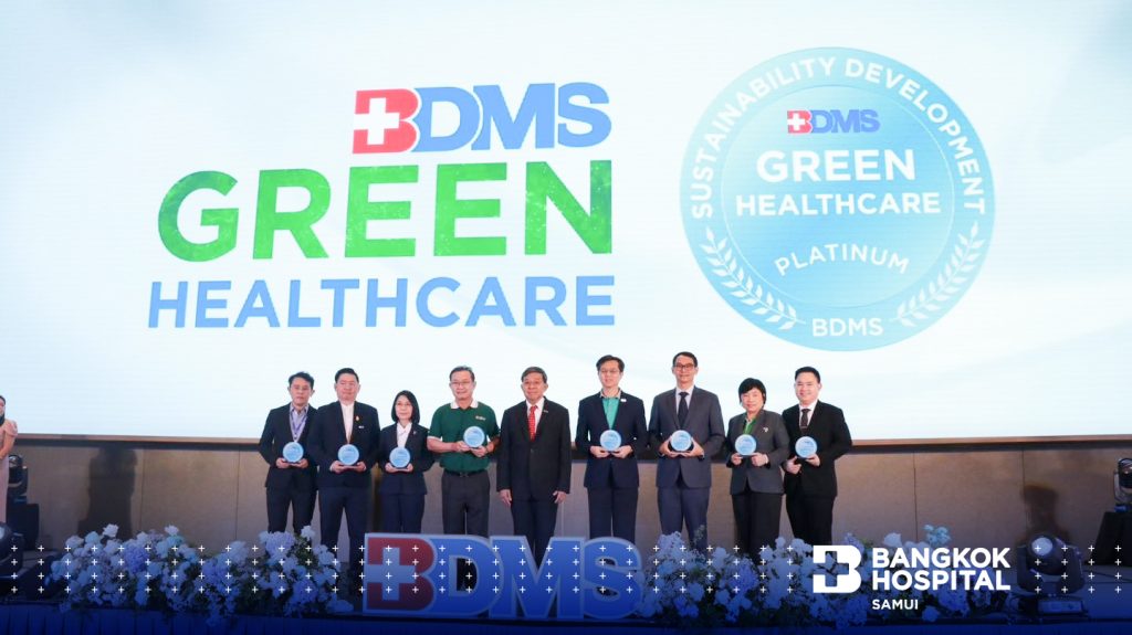 18 October 2024 – Dr. Somrit Jantarapratin, Director of Bangkok Hospital Samui, led his team to receive this esteemed award at the BDMS Awards 2024, held at the BDMS Connect Center in Bangkok. This award is given to hospitals that meet sustainability development standards and excel in environmental management. It is a proud achievement that reflects our commitment to environmental care and the creation of a sustainable organization.