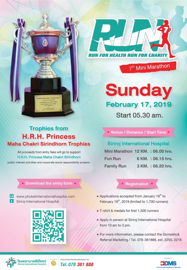 Where: 3rd floor Building 3, Bangkok Hospital Siriroj When: January 19 to February 16, 2019 10.00 – 3.00 pm (except weekends) *for more information, contact Domestic Marketing Department / Tel. 076-361888 ext. 2250 * Not open on the race day. *application form is available for download at: https://goo.gl/sKU1nv