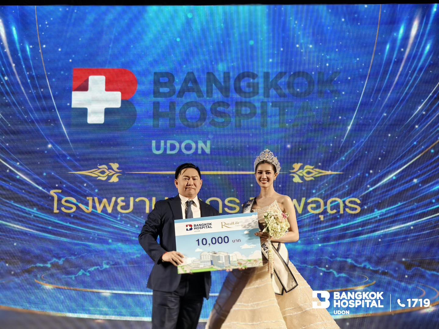 Bangkok Hospital Udon, led by Dr. Ongart Lertkajornsin, Director of Bangkok Hospital Udon, has provided financial support to “Maymint Jiraporn Saladaeng,” Miss Thailand 2026, who is originally from Udon Thani. The support aims to encourage and promote the potential of local talent from Udon Thani to shine on the national stage.