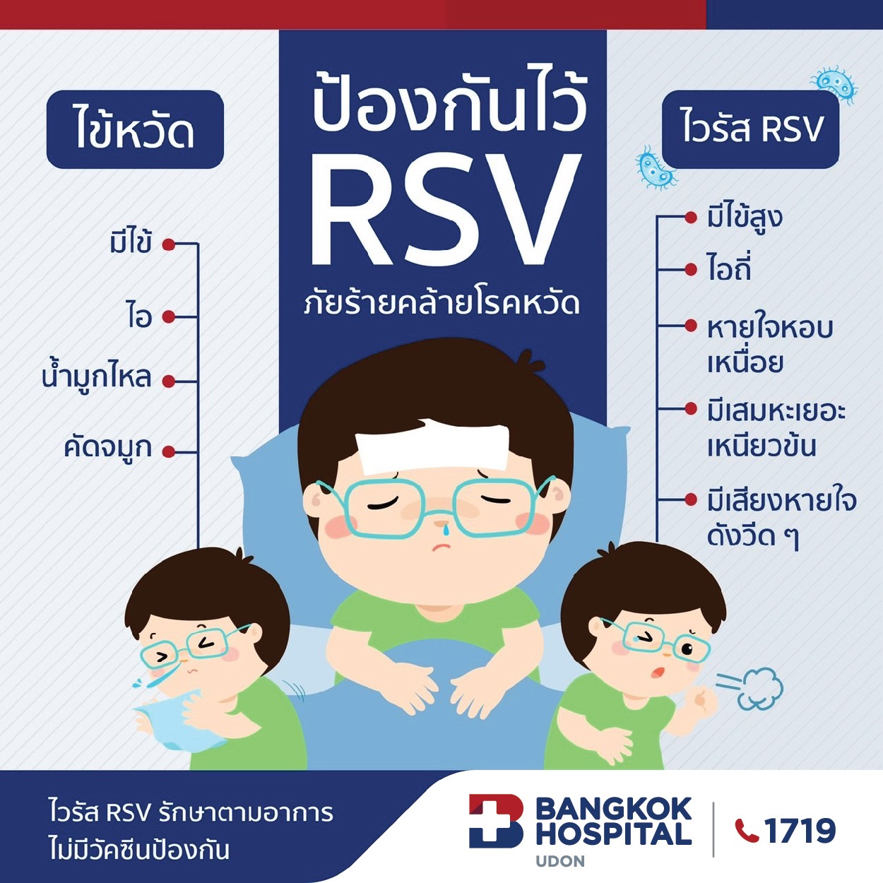 RSV virus is commonly found during the rainy season. Symptoms may look like a common cold but are far more severe. This virus can cause serious pneumonia and may even be fatal, especially in infants.
