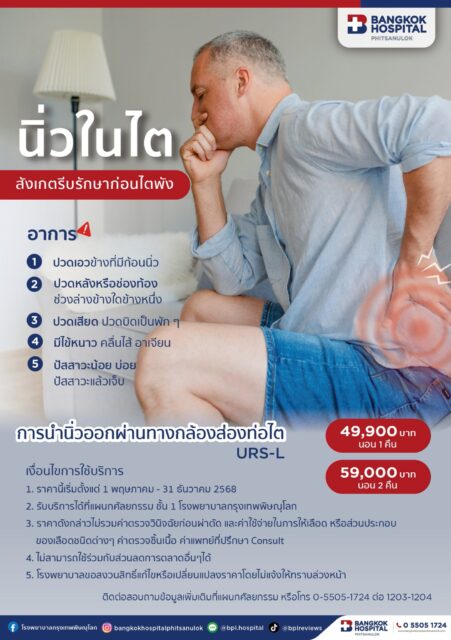ผ่าตัดนิ่วในท่อไตโดยวิธีการส่องกล้อง รพ. กรุงเทพ พิษณุโลก