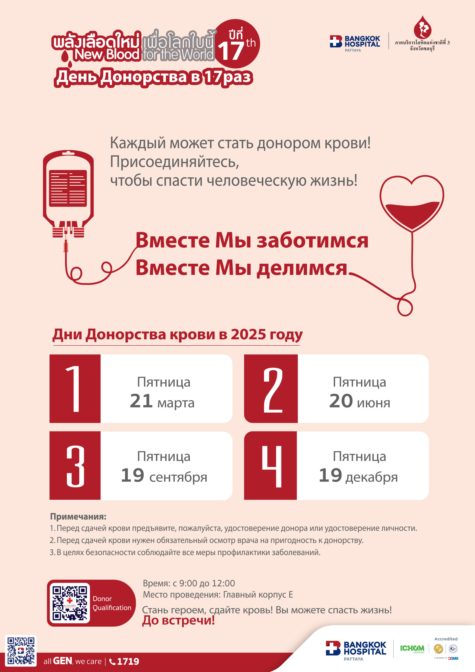 День Донорства в 17 раз< 1 Минуты на чтениеИнформация отBangkok Hospital PattayaОбновлено: 10 ก.ย. 2025Рекомендуемые пакетыпрограммы проверки здоровья ребенкаДиагностика и лечение лишнего весаНизкодозная КТ грудной клетки (НДКТ)Bangkok Hospital PattayaОбновлено: 10 ก.ย. 2025Пакеты и акциипрограммы проверки здоровья ребенка1,900 - 5,900 батподробностиКупить сейчасДиагностика и лечение лишнего веса2,299 - 12,999 батподробностиКупить сейчасНизкодозная КТ грудной клетки (НДКТ)2,900 батподробностиКупить сейчасПосмотреть другие пакетыНовости и событияСмотреть всеНовости и событияПрограмма ведение беременности "Я стану мамой"Ура!!! Еще один центр передового уровняИнофрмация для вашей безопасностиСмотреть все