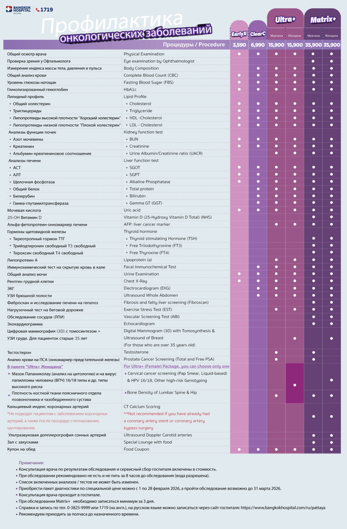 - Приобрести пакет диагностики по специальной цене можно с 1 по 28 февраля 2026, а пройти обследование возможно до 31 марта 2026.