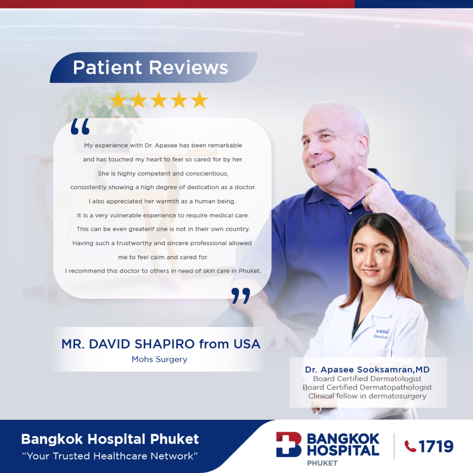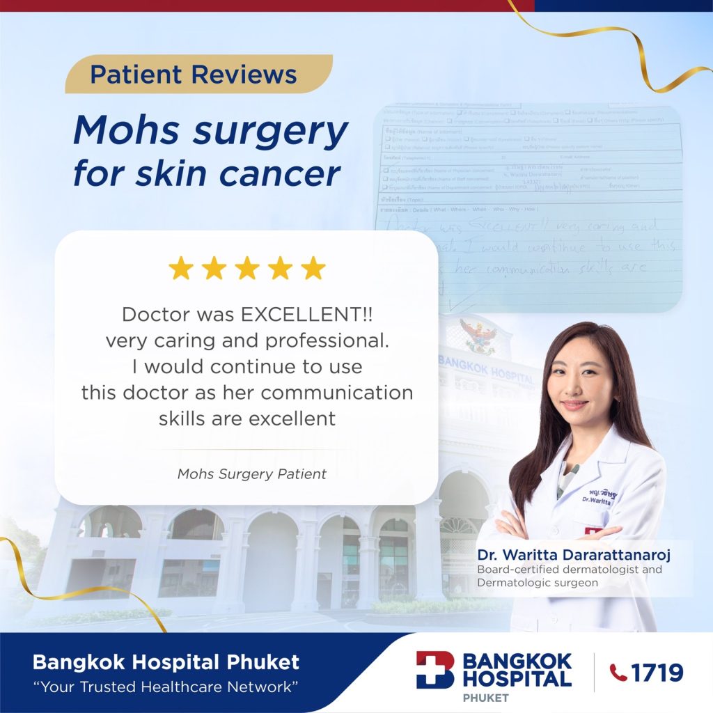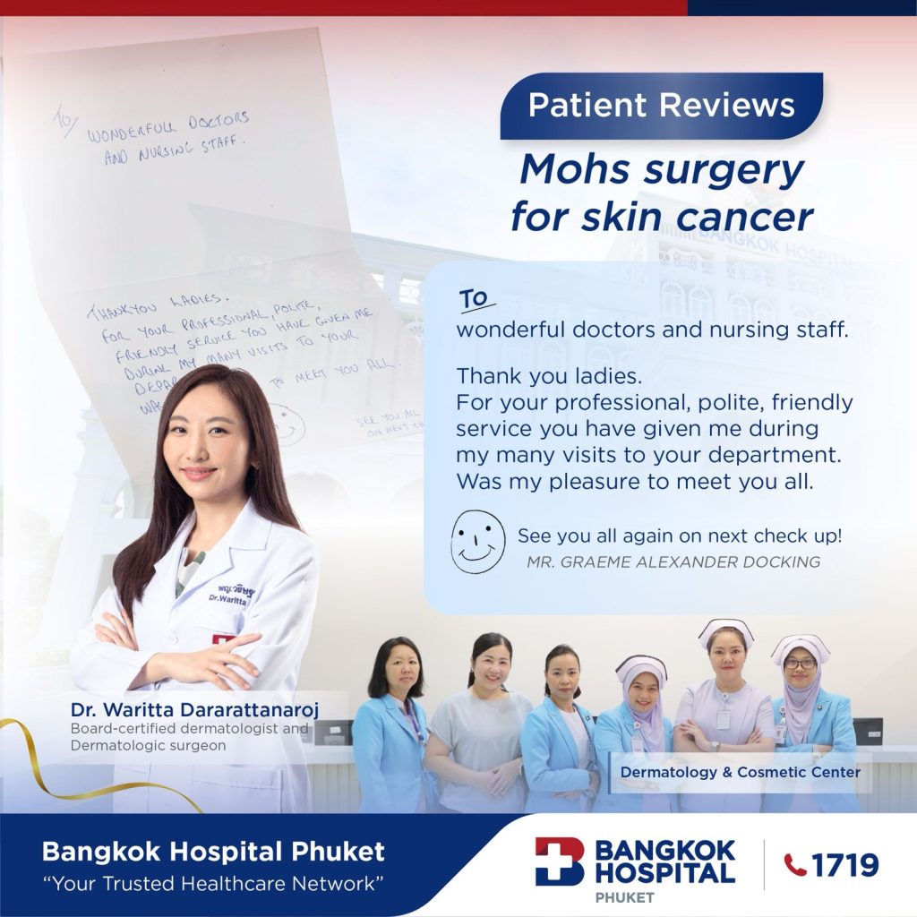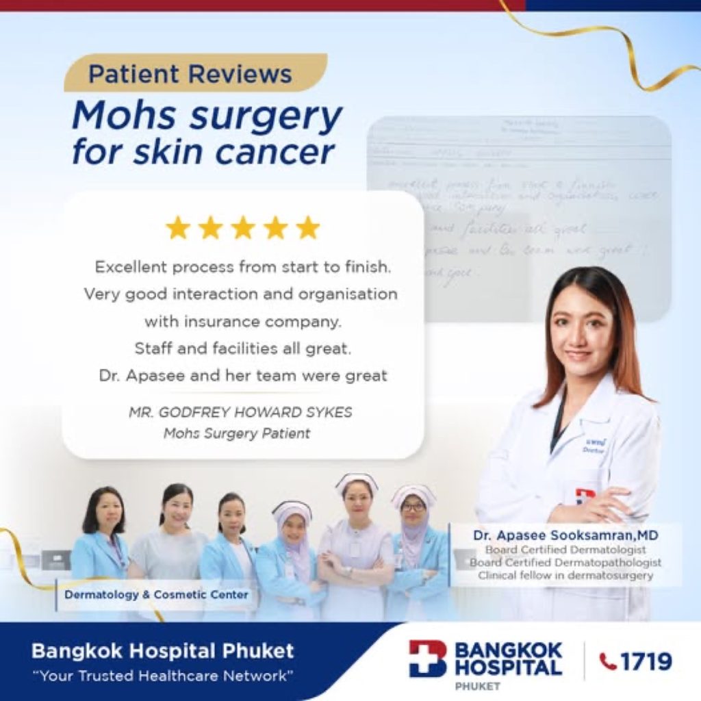 If you have been diagnosed with skin cancer or have a suspicious lesion, contact Bangkok Hospital Phuket to learn if Mohs surgery is right for you. We are here to guide you every step of the way—with compassion, precision, and expertise.