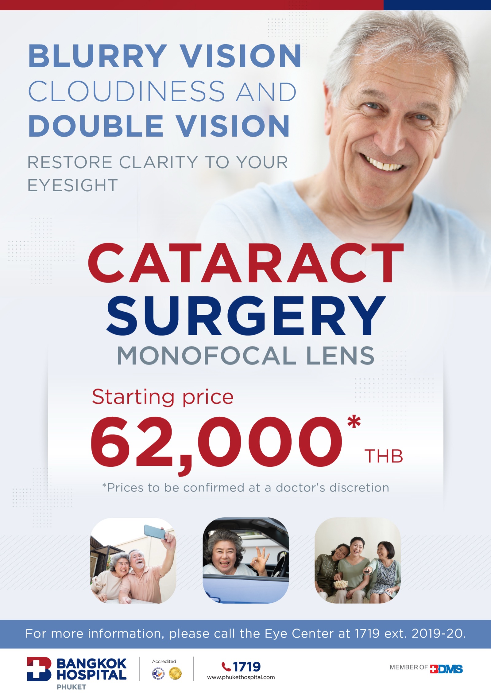Eye Center, 2nd floor, is open daily Monday – Thursday from 8.00 am to 5.00 pm. Friday – Sunday from 8.00 am to 4.00 pm.