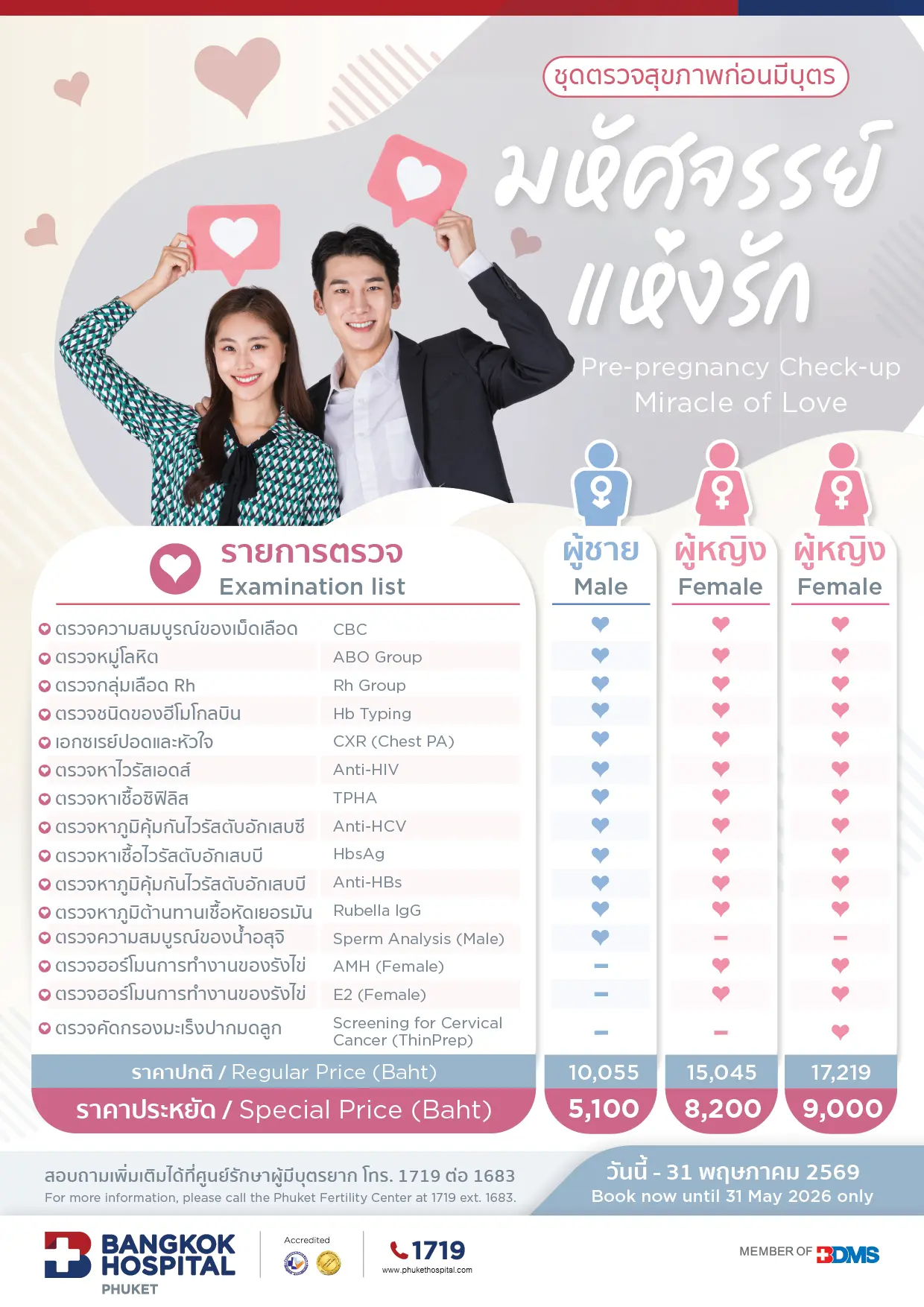 Phuket Fertility Center, 2nd floor, Open daily from 8.00 am. – 4.00 pm. Contact the Women’s Health Center, Ground floor