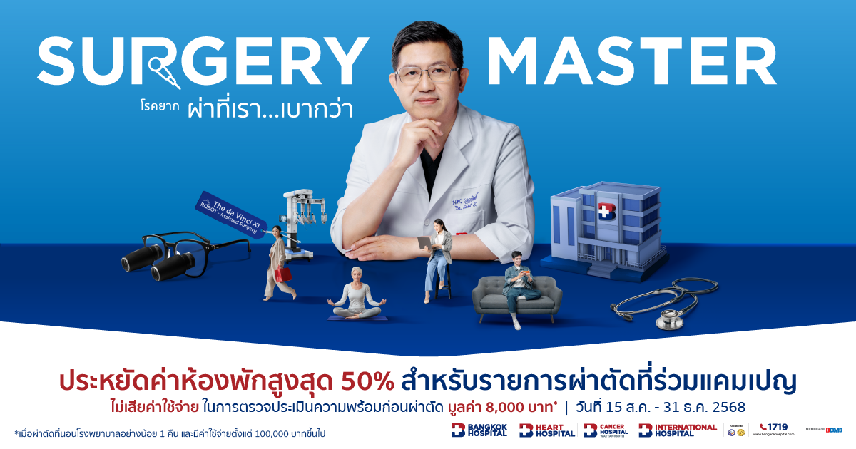 สิทธิพิเศษสำหรับผู้เข้ารับการผ่าตัดรักษา สัมผัสประสบการณ์การดูแลจากศูนย์ความเป็นเลิศของเรา ตั้งแต่วันที่ 15 สิงหาคม – 31 ธันวาคม 2568