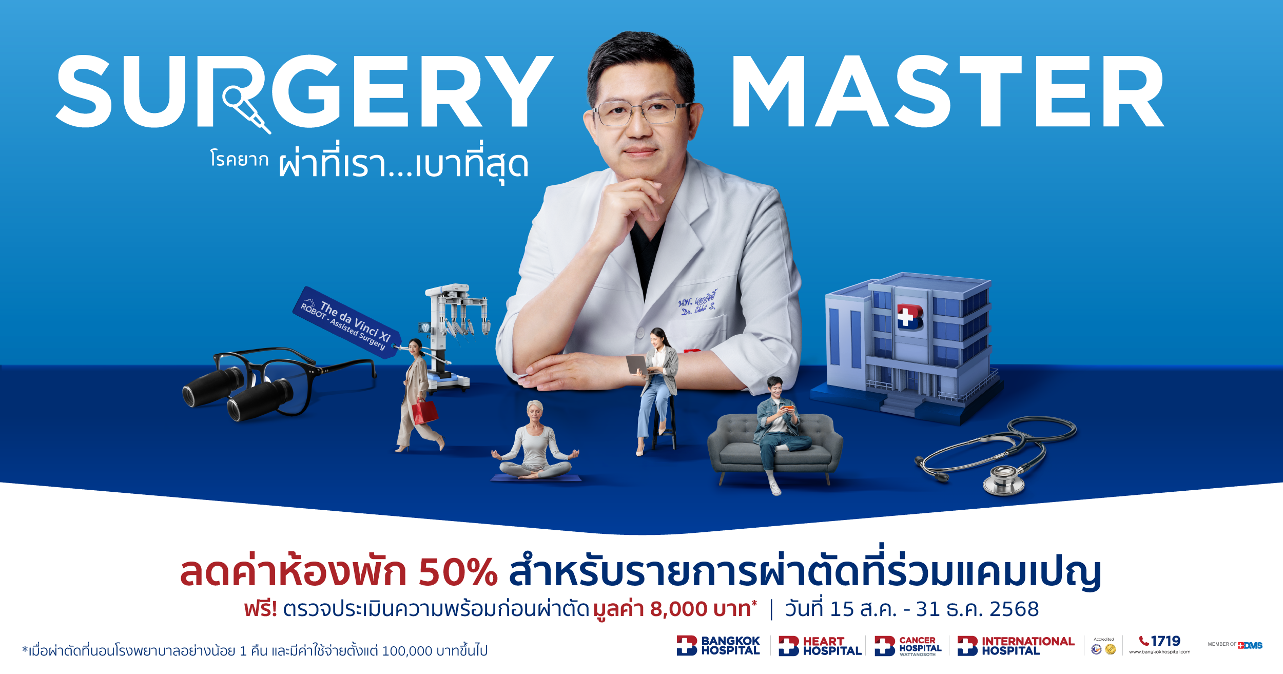 แพ็กเกจราคาสุดคุ้มรวมลดค่าห้องพักแล้ว 50% สำหรับรายการผ่าตัดที่ร่วมแคมเปญ
