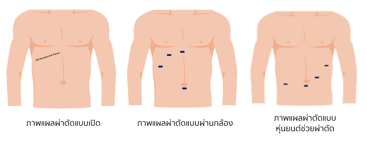 - เนื่องจากใช้แผลเล็ก ผู้ป่วยจึงมักมี อาการเจ็บน้อยและฟื้นตัวเร็วกว่า การผ่าตัดแบบเปิด