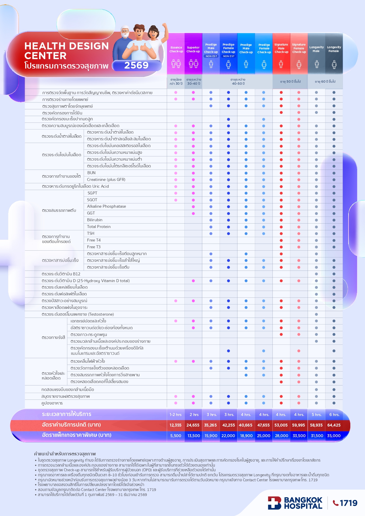 | แพ็กเกจตรวจสุขภาพประจำปีตามช่วงอายุ | รายละเอียดแพ็กเกจตรวจสุขภาพประจำปี 2569 |
