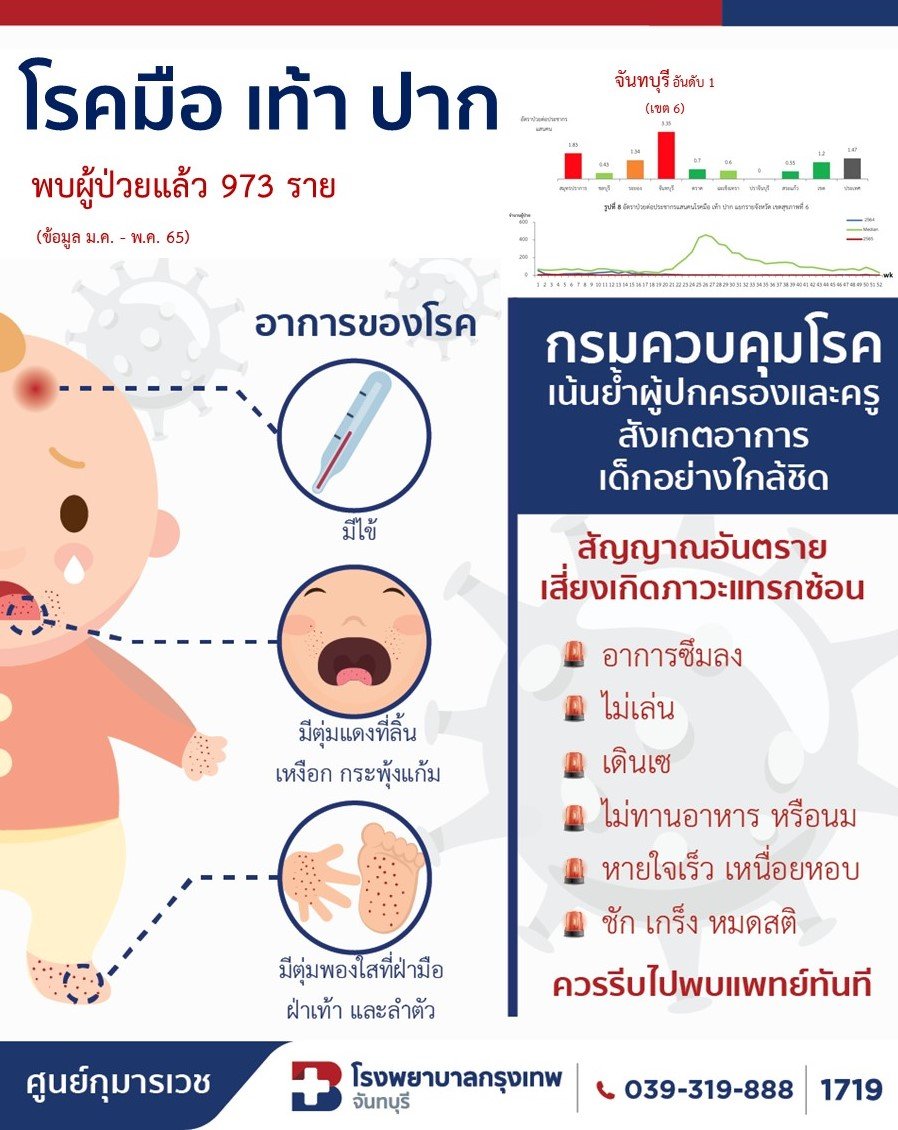 โรคมือ เท้า ปาก< 1 นาทีในการอ่านข้อมูลโดยโรงพยาบาลกรุงเทพจันทบุรีอัปเดตเมื่อ: 08 ต.ค. 2568โรงพยาบาลกรุงเทพจันทบุรีอัปเดตเมื่อ: 08 ต.ค. 2568 สอบถามเพิ่มเติมที่คลินิกกุมารเวช2nd Floor, Building B08.00-20.00 น.039-319-888[email protected]แพทย์ที่เกี่ยวข้องดูแพทย์ทั้งหมดข้อมูลสุขภาพดูข้อมูลสุขภาพอื่น ๆข้อมูลสุขภาพการเตรียมตัวทดสอบภูมิแพ้ทางผิวหนัง (Skin Test)ปกป้องลูกน้อยจากภูมิแพ้ ต้องแก้ที่ต้นเหตุการเตรียมตัวตรวจ Skin Testดูข้อมูลสุขภาพอื่น ๆ