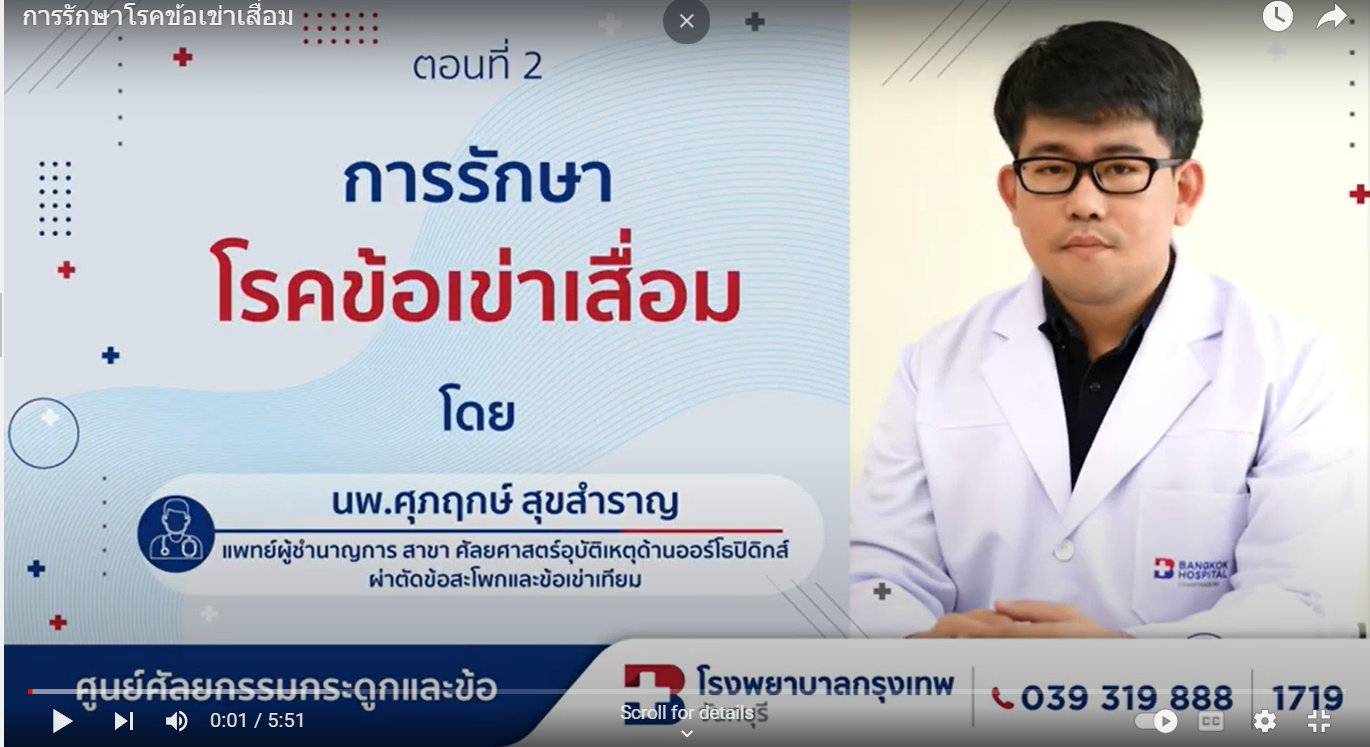 การรักษาข้อเข่าเสื่อม< 1 นาทีในการอ่านข้อมูลโดยโรงพยาบาลกรุงเทพจันทบุรีอัปเดตเมื่อ: 08 ต.ค. 2568โรงพยาบาลกรุงเทพจันทบุรีอัปเดตเมื่อ: 08 ต.ค. 2568สอบถามเพิ่มเติมที่คลินิกศัลยกรรมข้อเข่าและข้อสะโพก1st Floor, Building A08.00-20.00 น.039-319-888[email protected]แพทย์ที่เกี่ยวข้องดูแพทย์ทั้งหมดข้อมูลสุขภาพดูข้อมูลสุขภาพอื่น ๆข้อมูลสุขภาพกระดูกสะโพกหักในผู้สูงอายุแพ็กเกจเปลี่ยนข้อเข่าเสียงจากผู้รับบริการผ่าตัดเปลี่ยนข้อเข่าดูข้อมูลสุขภาพอื่น ๆ