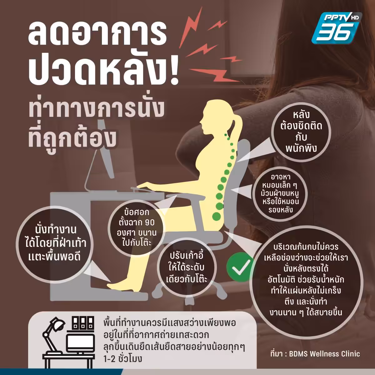 ทั้งนี้ควรปรับท่าทางการนั่งให้ถูกต้อง