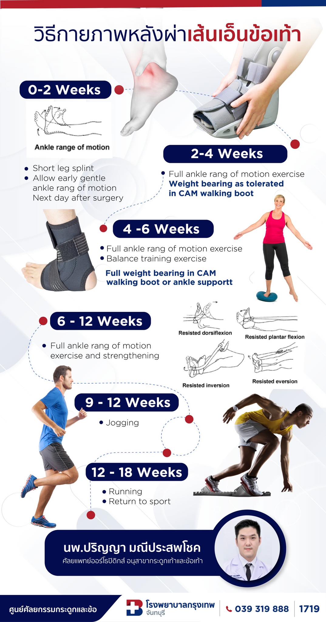 วิธีกายภาพหลังผ่าตัดเอ็นข้อเท้า< 1 นาทีในการอ่านข้อมูลโดยโรงพยาบาลกรุงเทพจันทบุรีอัปเดตเมื่อ: 08 ต.ค. 2568โรงพยาบาลกรุงเทพจันทบุรีอัปเดตเมื่อ: 08 ต.ค. 2568สอบถามเพิ่มเติมที่คลินิกศัลยกรรมเท้าและข้อเท้า1st Floor, Building A08.00 - 20.00 น.039-319-888[email protected]แพทย์ที่เกี่ยวข้องดูแพทย์ทั้งหมดข้อมูลสุขภาพดูข้อมูลสุขภาพอื่น ๆข้อมูลสุขภาพ3 ระดับความรุนแรงของข้อเท้าแพงการผ่าตัดรักษานิ้วหัวแม่เท้าเกรุนแรง (Hallux Valg)ภาวะเท้าแบนในเด็กและวัยรุ่นดูข้อมูลสุขภาพอื่น ๆ