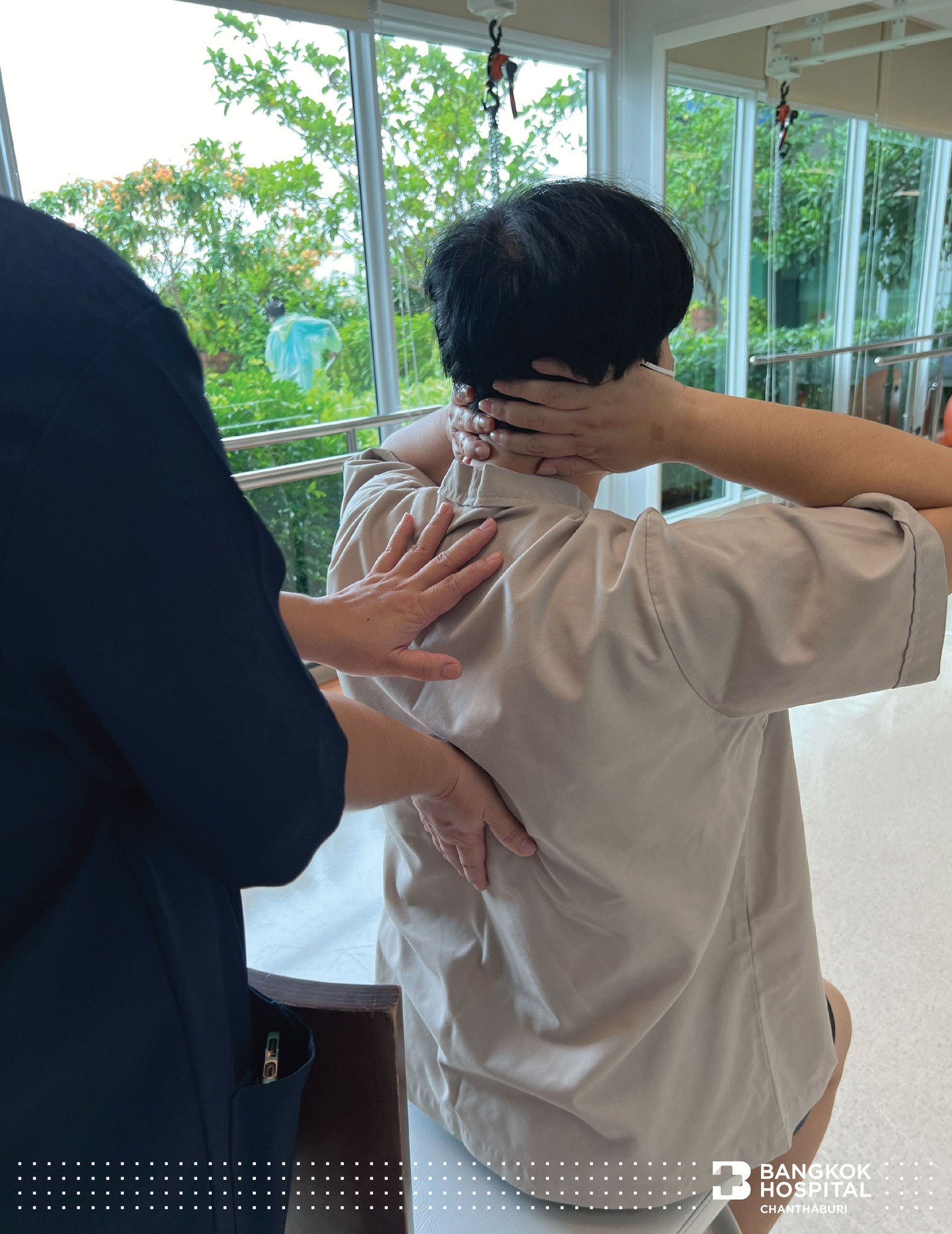 การฝึกยืดกล้ามเนื้อบริเวณข้อไหล่ จุดประสงค์เพื่อป้องกันข้อไหล่ยึดติด
