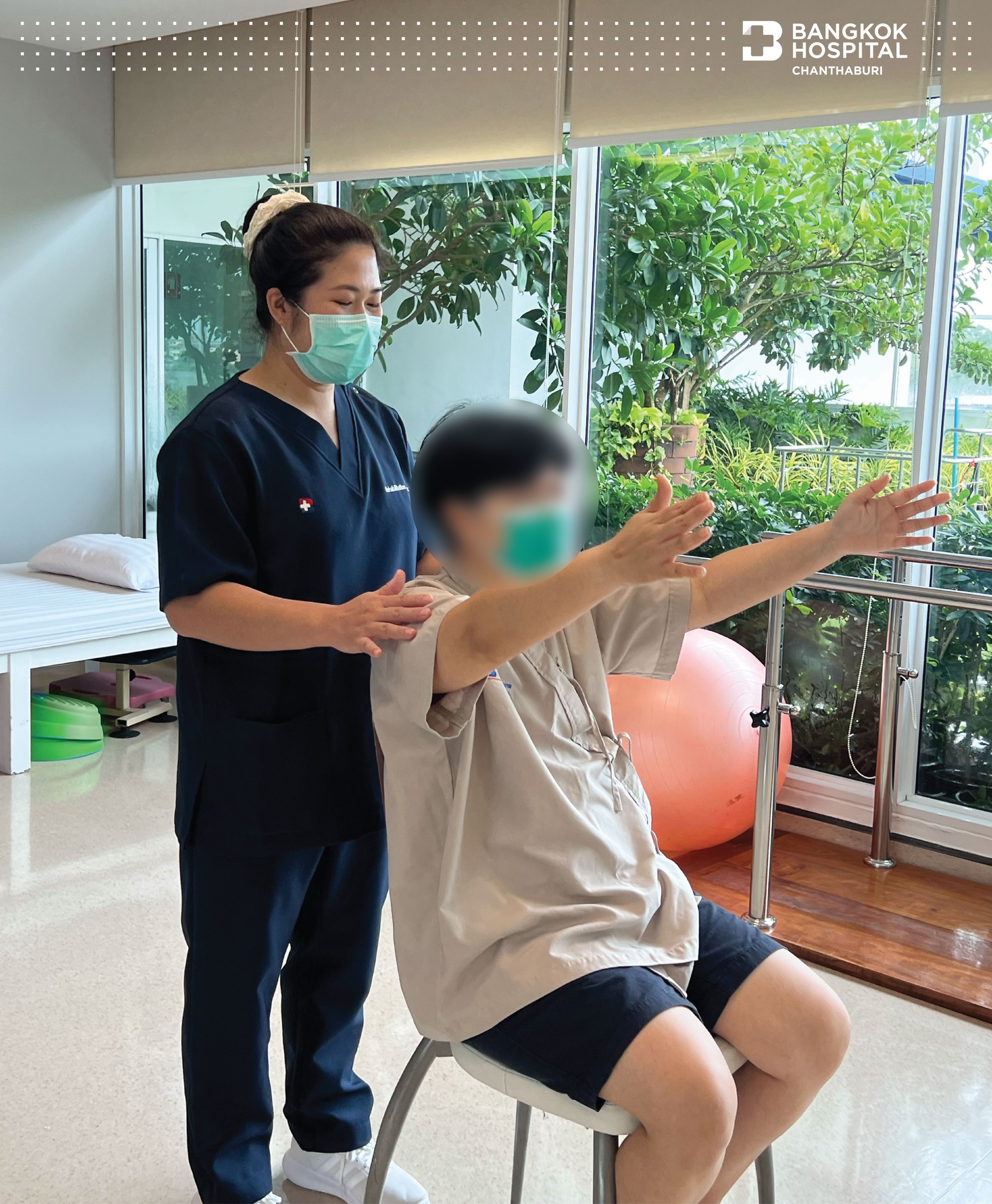ในผู้ป่วยที่ได้รับการผ่าตัดเต้านมอาจเกิดอาการปวดตึงแผลผ่าตัด ทำให้ไม่กล้าขยับเคลื่อนไหวหรือใช้งานแขนข้างที่ผ่าตัด