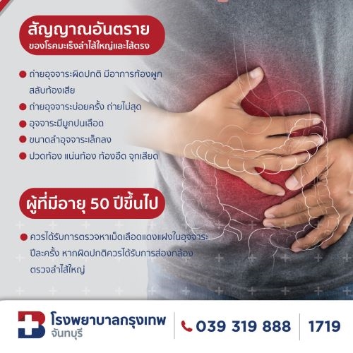 มะเร็งลำไส้ใหญ่< 1 นาทีในการอ่านข้อมูลโดยโรงพยาบาลกรุงเทพจันทบุรีอัปเดตเมื่อ: 08 ต.ค. 2568โรงพยาบาลกรุงเทพจันทบุรีอัปเดตเมื่อ: 08 ต.ค. 2568มะเร็งลำไส้ใหญ่ สอบถามเพิ่มเติมที่คลินิกมะเร็ง1st Floor, Building A08.00-22.00 น.039-319-888[email protected]แพทย์ที่เกี่ยวข้องดูแพทย์ทั้งหมดข้อมูลสุขภาพดูข้อมูลสุขภาพอื่น ๆข้อมูลสุขภาพรังสีร่วมรักษา Interventional-Radiologyรักษามะเร็งตับด้วยเทคนิค TACEมะเร็งเต้านมดูข้อมูลสุขภาพอื่น ๆ