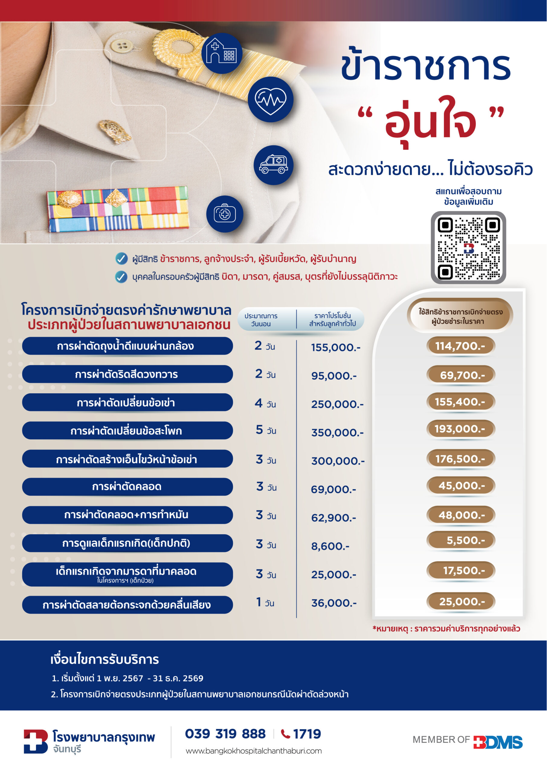 หากท่านไม่แน่ใจเกี่ยวกับสิทธิการรักษาพยาบาลของท่าน สามารถตรวจสอบข้อมูลเพิ่มเติมได้ที่ระบบตรวจสอบสิทธิรักษาพยาบาลของกรมบัญชีกลาง เพื่อความสะดวกในการเข้ารับบริการ