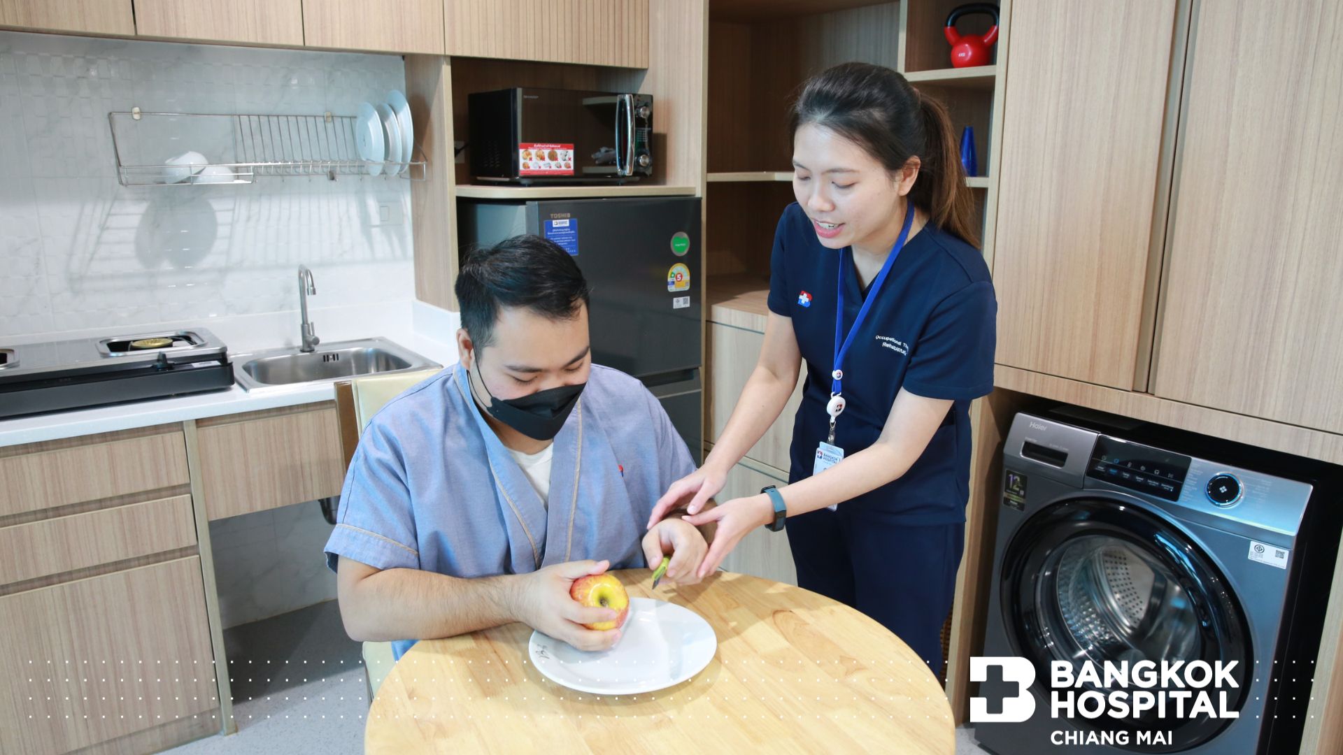 • บริการห้องฝึกกิจวัตรประจำวัน (Activities of Daily Living Room – ADL)  บริการให้ผู้ป่วยฟื้นตัวเร็วขึ้นและสามารถกลับไปใช้ชีวิตประจำวันได้ใกล้เคียงกับปกติและช่วยเหลือตัวเองได้มากที่สุด ห้องถูกออกแบบมาเป็นพิเศษช่วยฟื้นฟูผู้ป่วยตามหลักเวชศาสตร์ฟื้นฟู ในรูปแบบห้องจำลองสภาพแวดล้อมจริงของการใช้ชีวิตเสมือนอยู่ในบ้านภายใต้การดูแลและให้คำแนะนำจากทีมผู้เชี่ยวชาญด้านการฟื้นฟูสุขภาพ