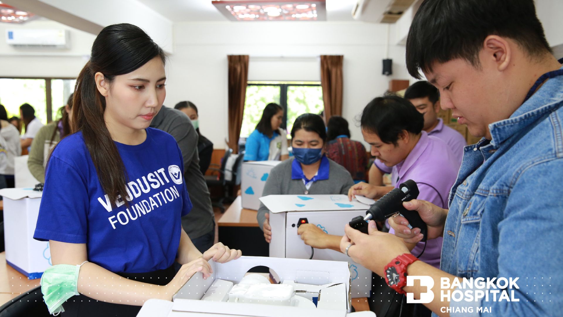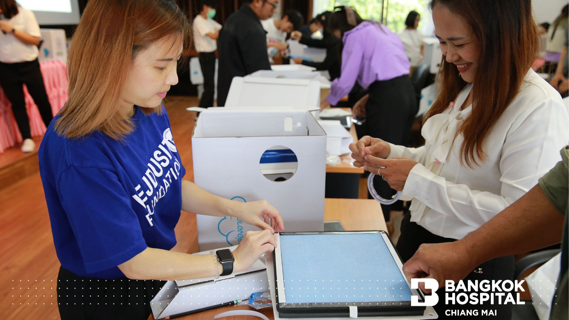 โดยในครั้งนี้ พญ. กัณฐิกา สิงห์สี กุมารแพทย์ชำนาญการด้านโรคหัวใจจากโรงพยาบาลกรุงเทพเชียงใหม่ ได้ร่วมนำทีมส่งมอบ “กล่องอากาศดี” หรือ เครื่องเติมอากาศและเครื่องฟอกอากาศแบบ DIY เพื่อทำคลีนรูมสำหรับศูนย์พัฒนาเด็กเล็ก ในพื้นที่อำเภอฮอดและอำเภอดอยเต่า ภายใต้โครงการ “คืนลมหายใจที่ไร้ฝุ่น” ณ ห้องประชุมเทศบาลตำบลท่าข้าม อำเภอฮอด จังหวัดเชียงใหม่ เมื่อวันที่ 30 พฤศจิกายน 2566 ที่ผ่านมา